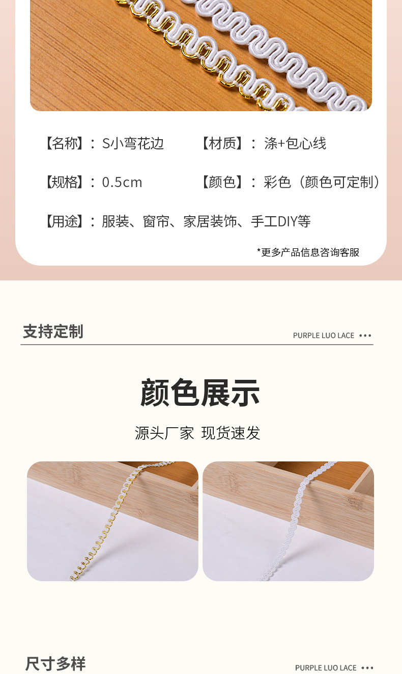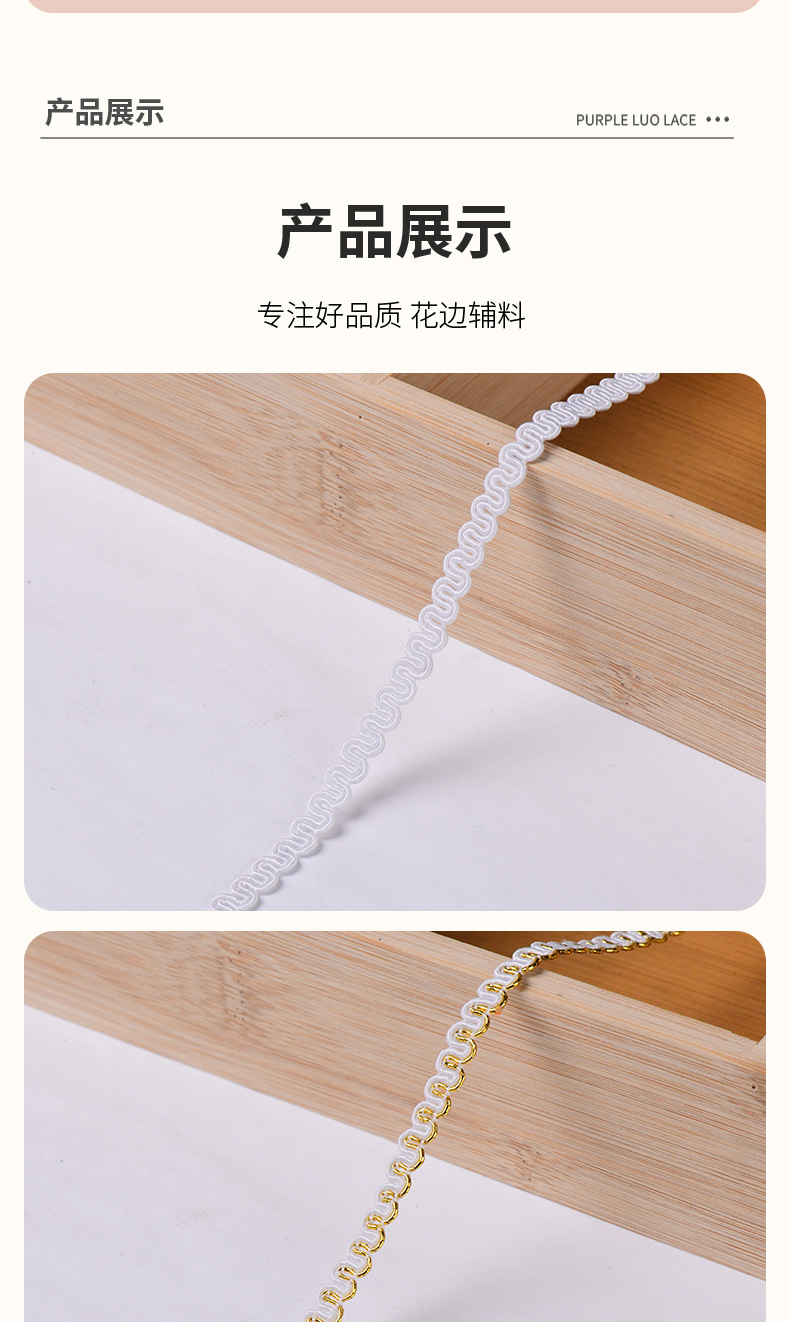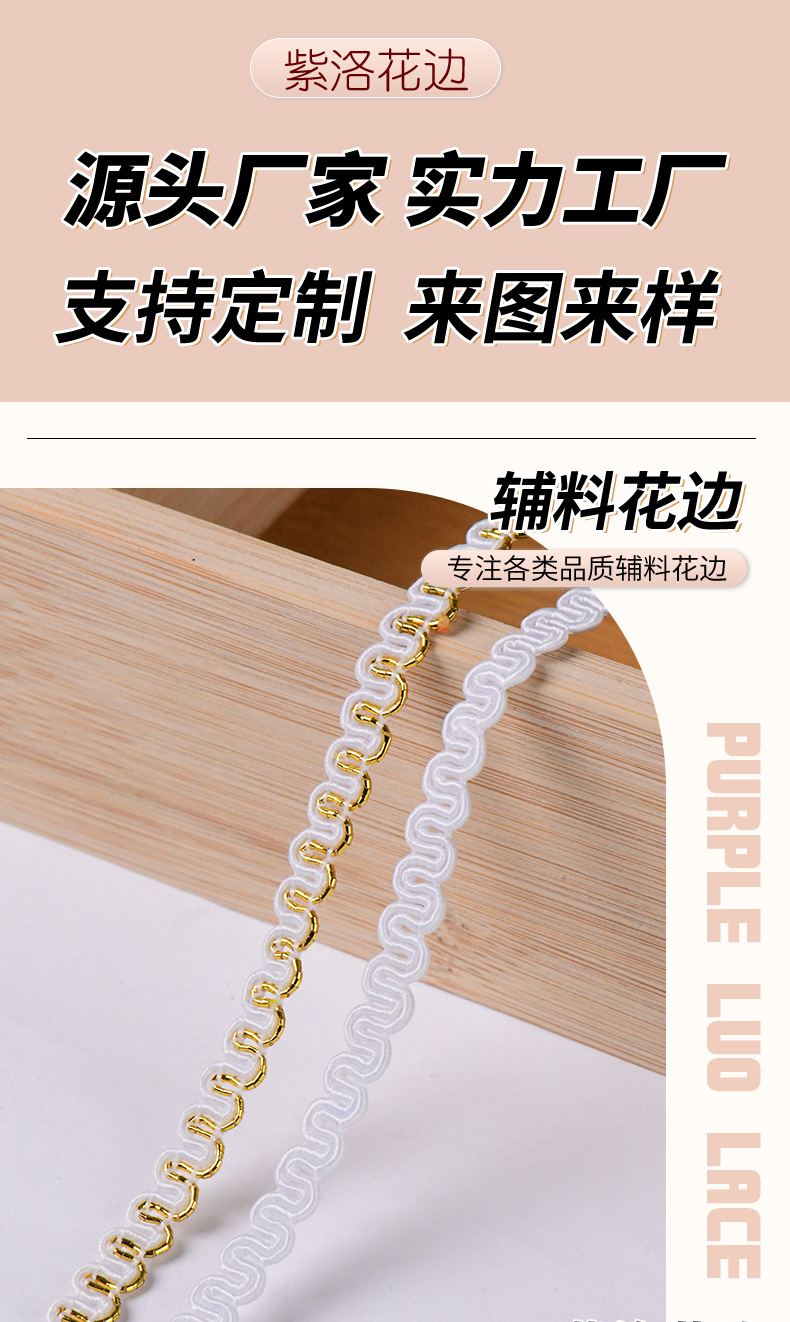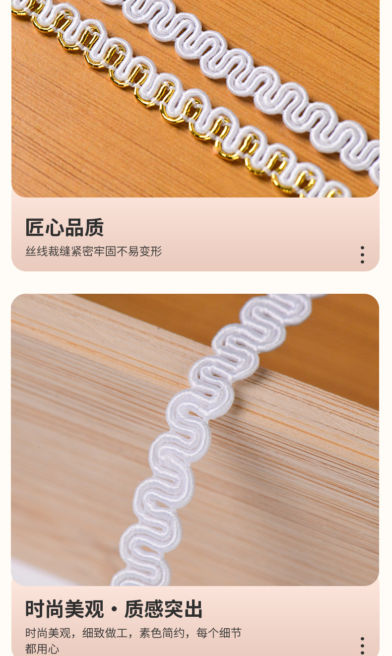 02#2.5cm荷叶褶皱花边辅料吧唧托手工DIY配件单边加密打折花边