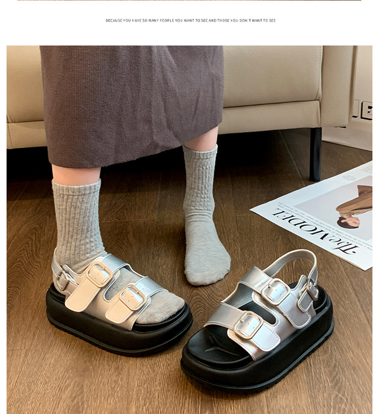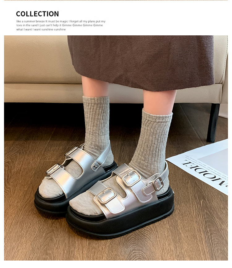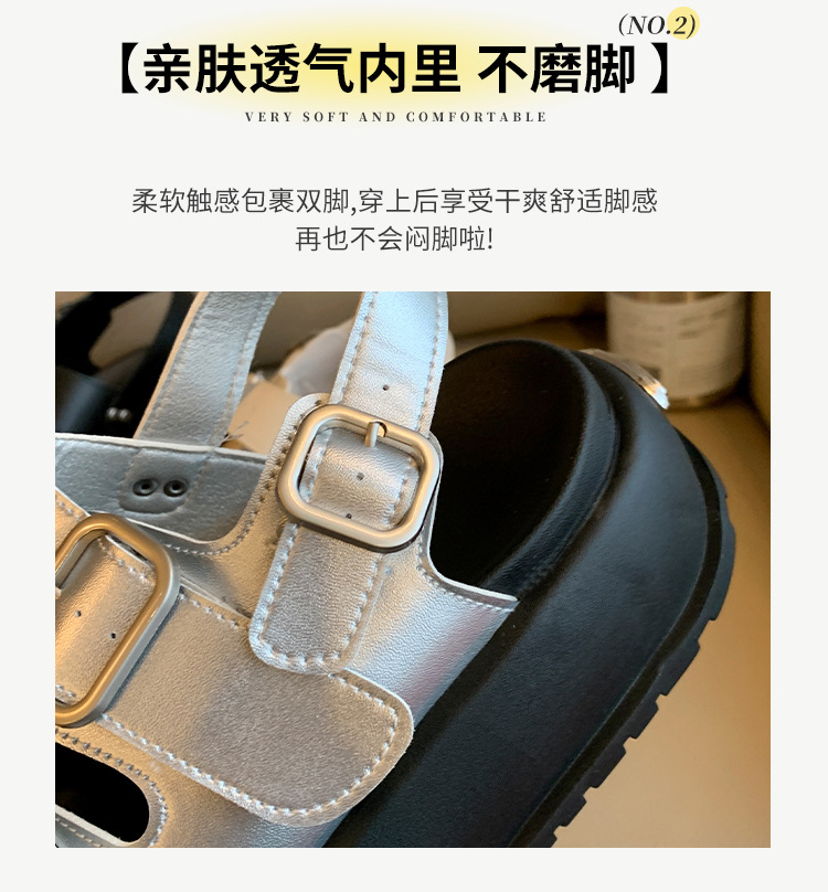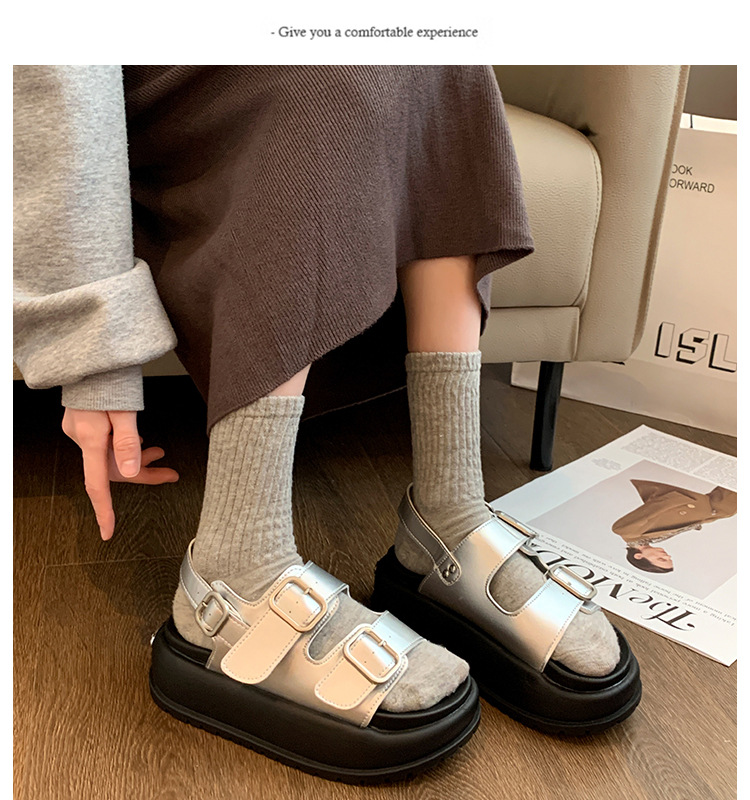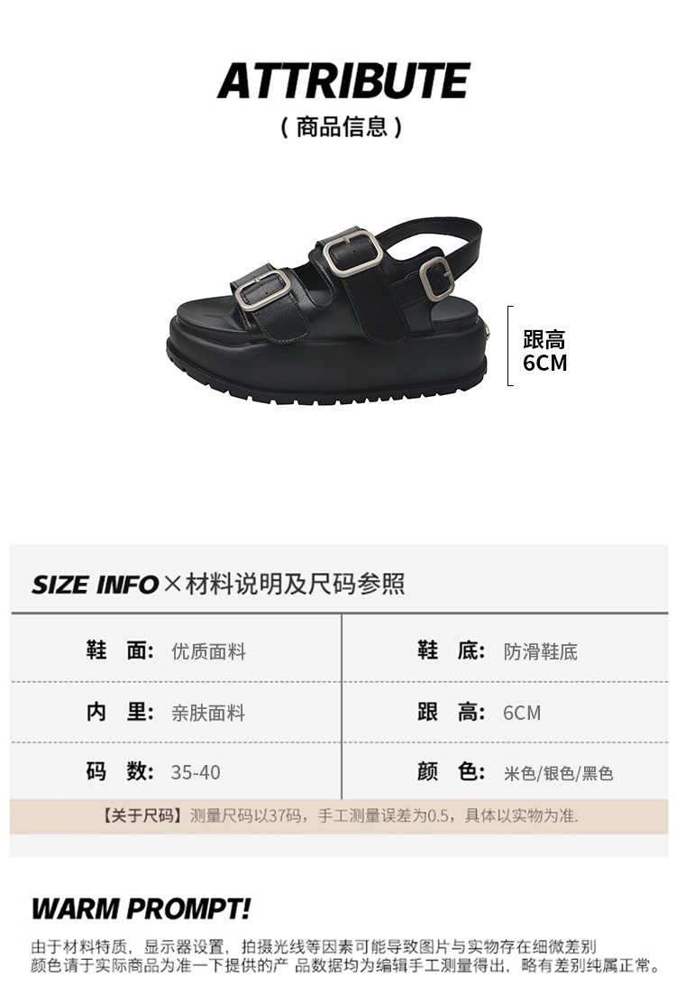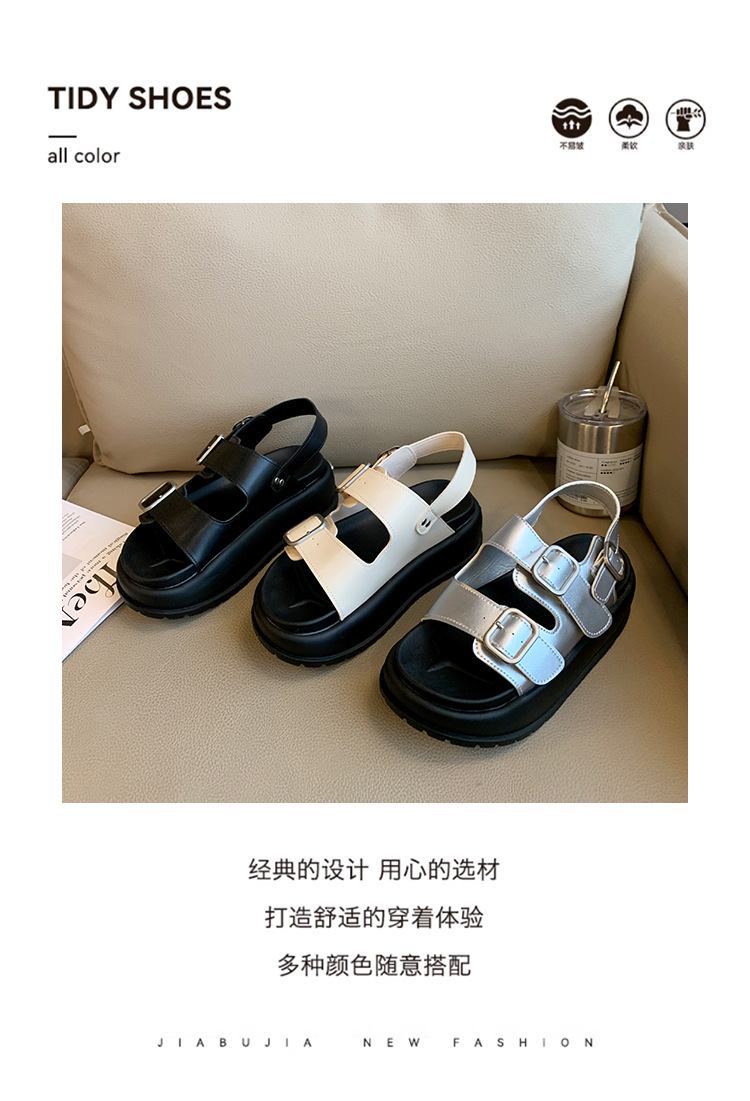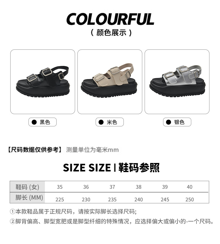 ローマンサンダル女性の 2025 夏の新厚底韓国スタイルレトロラウンドトゥダブルバックルストラップ学生カジュアルビーチサンダル