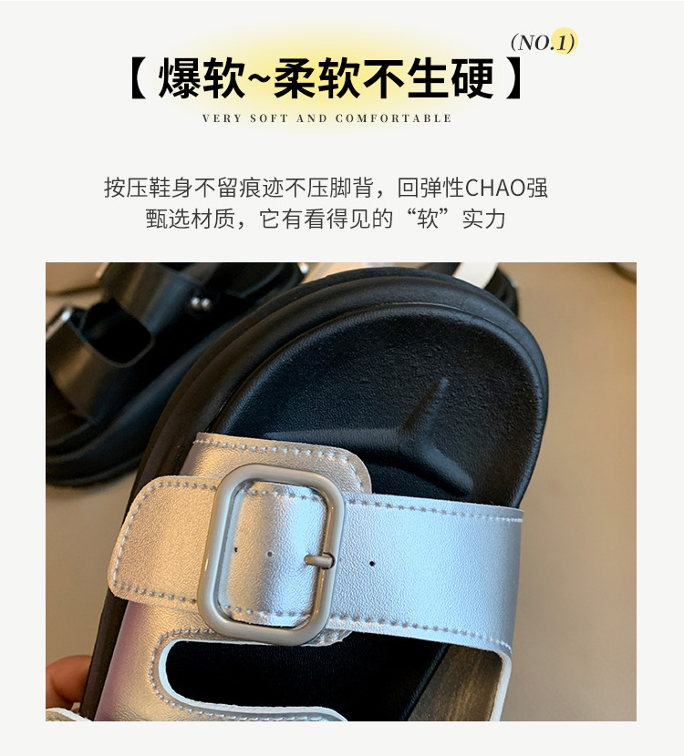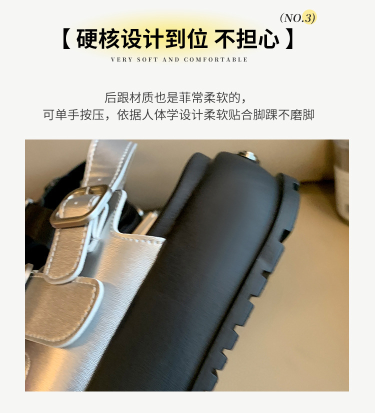 プラットフォーム厚底サンダルカジュアルレディースシューズ 2025 夏の新韓国スタイルスクエアトゥファッションベルトバックルフラットシューズ女性のための