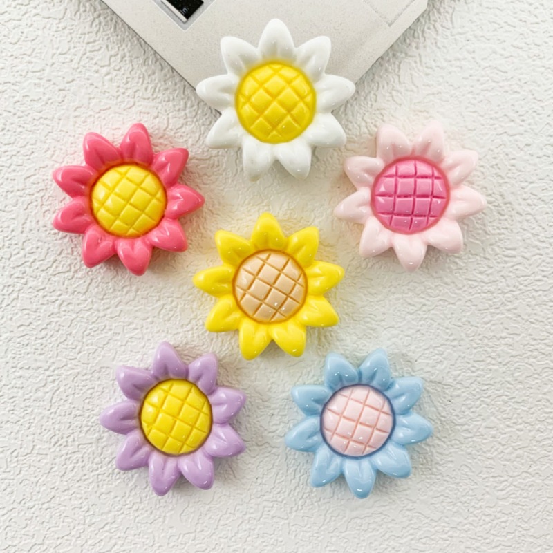 明るい色の太陽ヒマワリ樹脂部品diy洞靴花髪クリップロープ冷蔵庫貼り材料バッグ