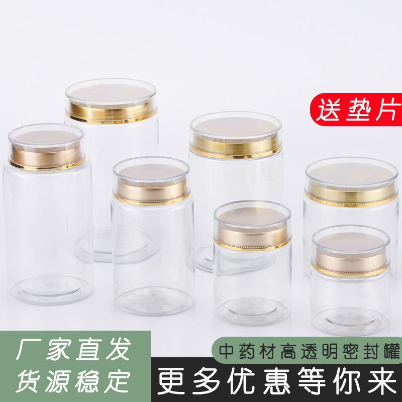 二重カバー厚いPET高透明ボトル漢方薬粉石gok西洋参片生薬食品級プラスチック缶