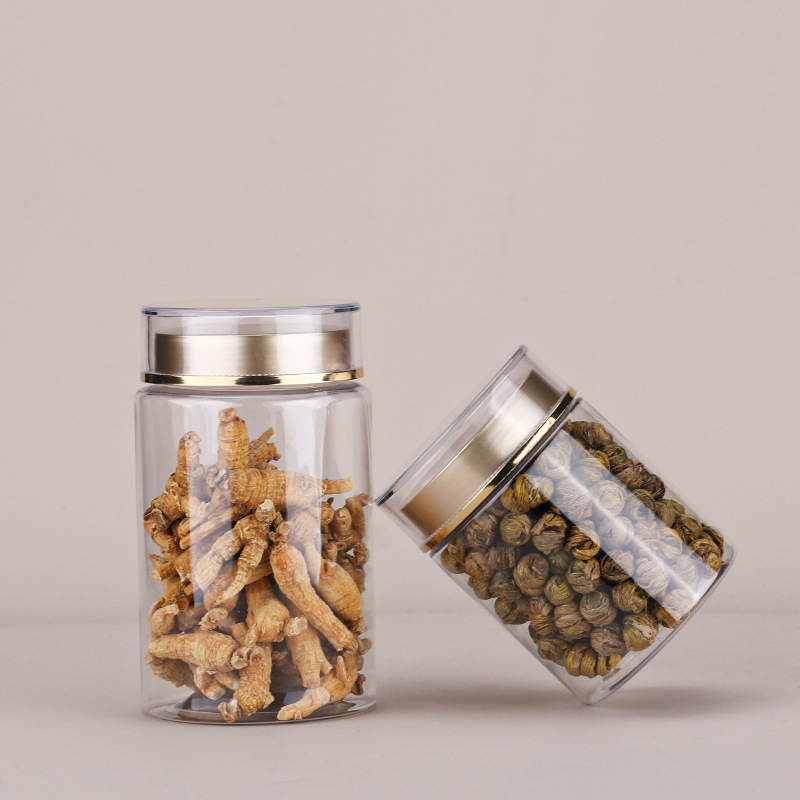二重蓋PET厚さ高透明密封缶空瓶茶葉西洋参石gok漢方薬粉包装瓶