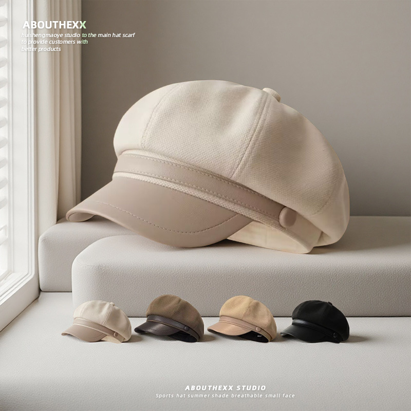 2025新款帽子女麂皮绒褶皱马术帽复古做旧平顶报童帽文艺画家帽潮