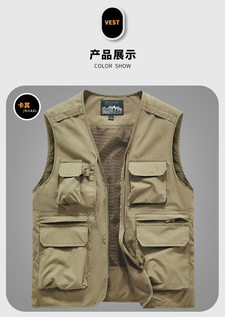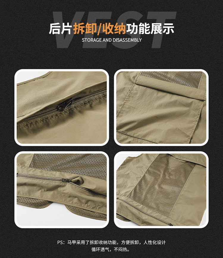 アウトドア男性多ポケット工装馬甲夏撮影釣りチョッキカン肩コート男性薄い馬クリップ7898