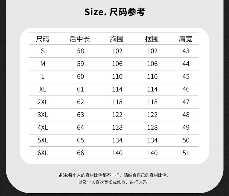 サイズ S,M,L,XL,2XL,3XL,4XL,5XL,6XL