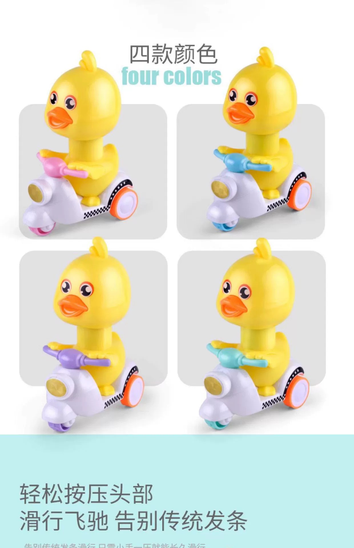 押圧式の小さい黄色のアヒルのおもちゃの子供の回力車の男の子の女の子のオートバイの車の赤ちゃんの慣性の小さい車の卸売り