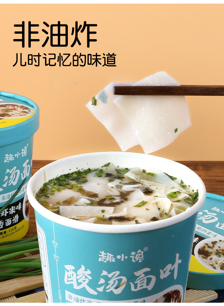 酸っぱいスープの葉の桶の詰め物は煮ないで海苔のエビの米の味の麺の切れを抽出します。