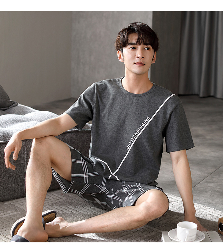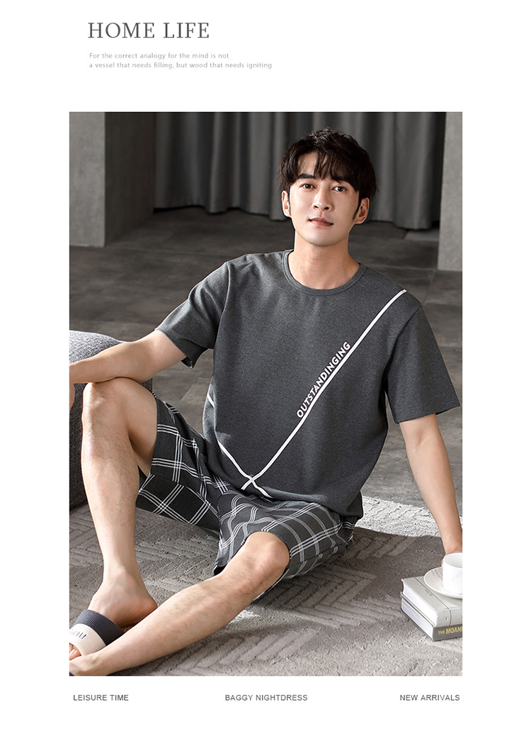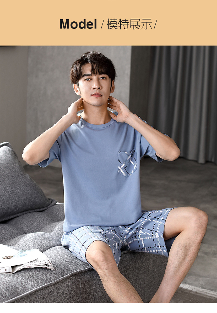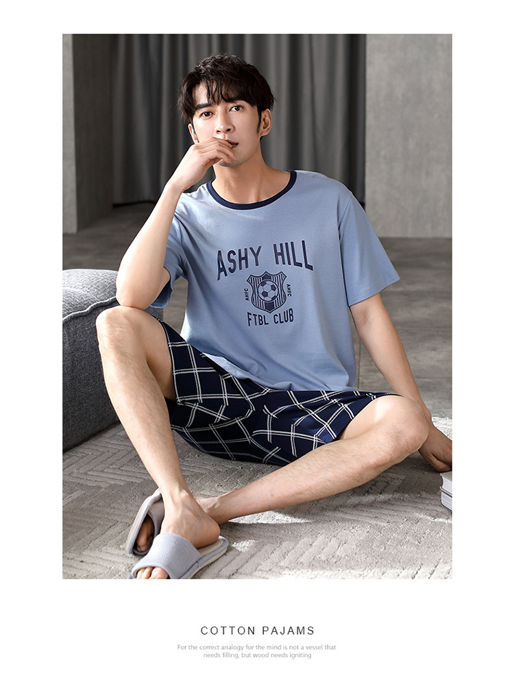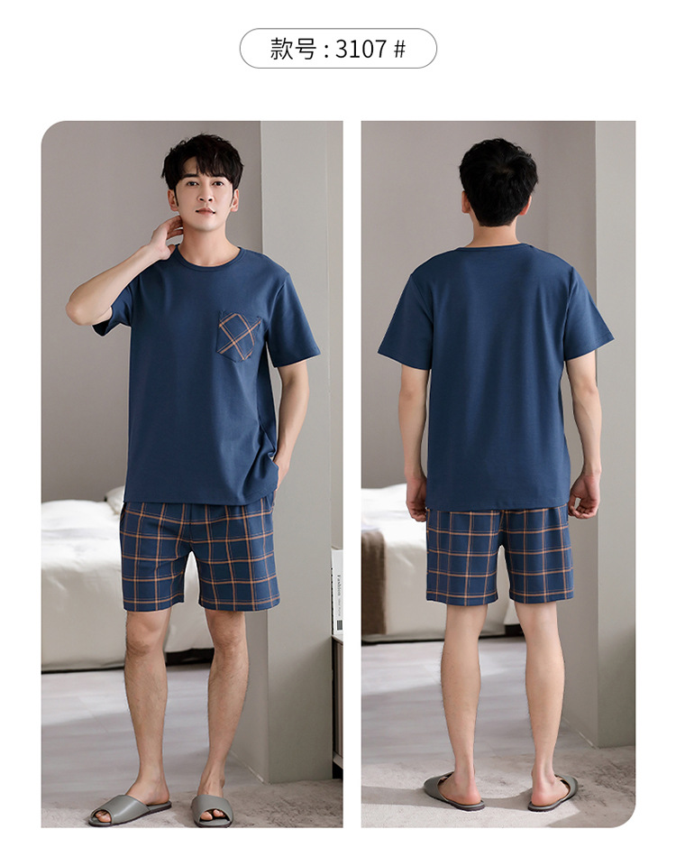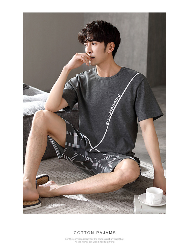 パジャマ男性夏半袖長ズボンシンプルな家庭服薄い綿質男性大サイズ青年学生カジュアルパジャマ