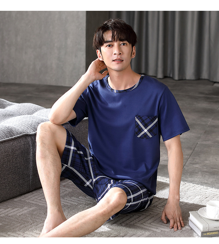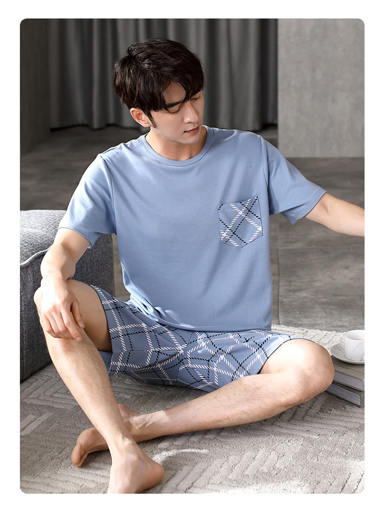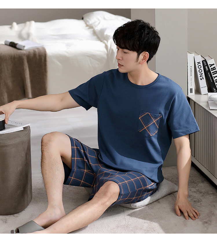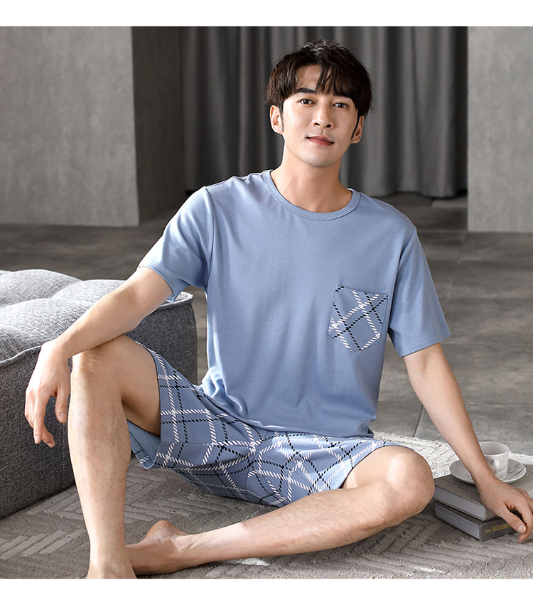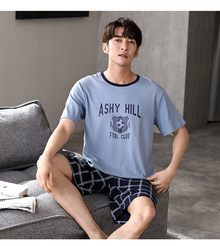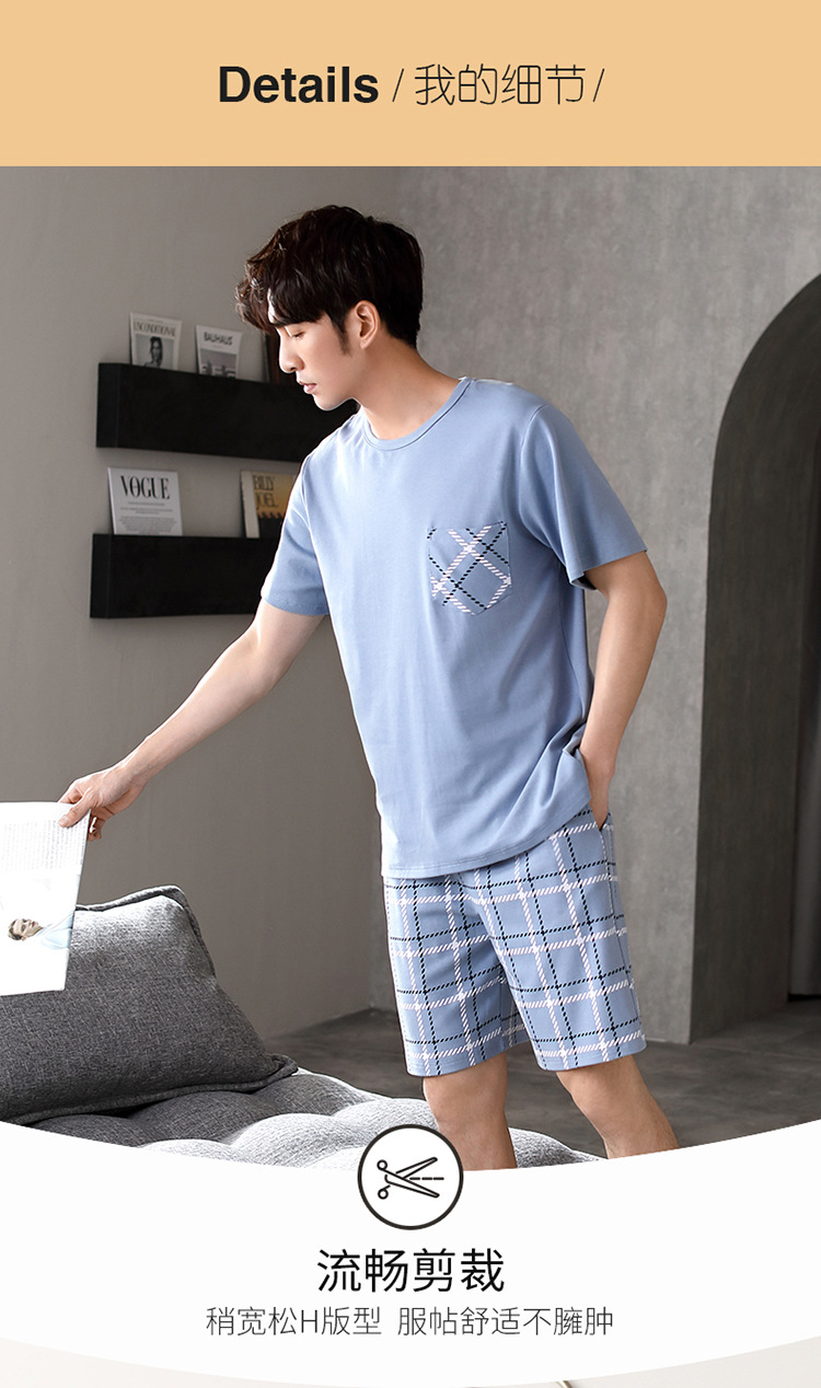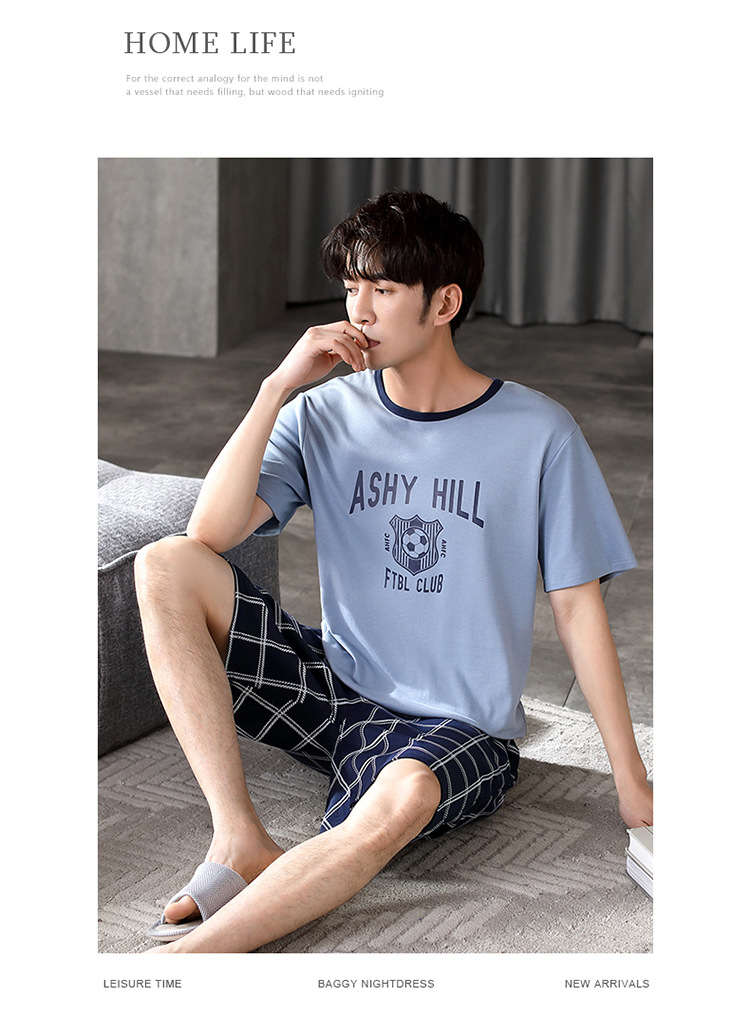 パジャマ男性夏半袖長ズボンシンプルな家庭服薄い綿質男性大サイズ青年学生カジュアルパジャマ