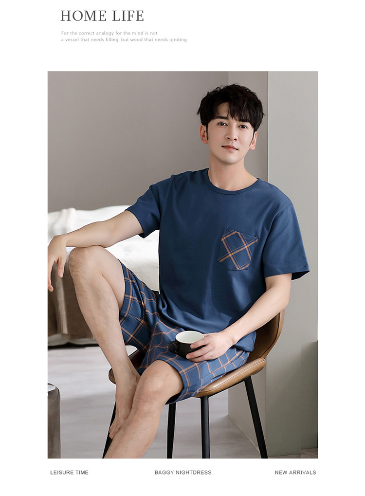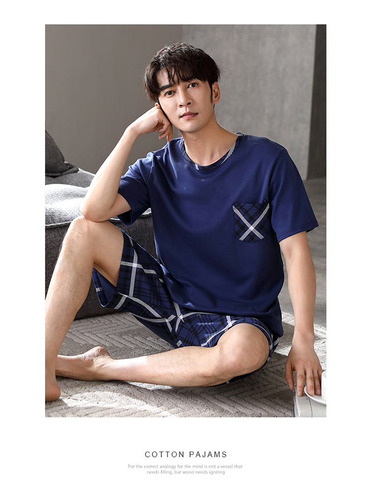 メンズパジャマ夏の純綿半袖ショーツ新しいカジュアルシンプルな中年お父さんは家の外で着用できます服セット