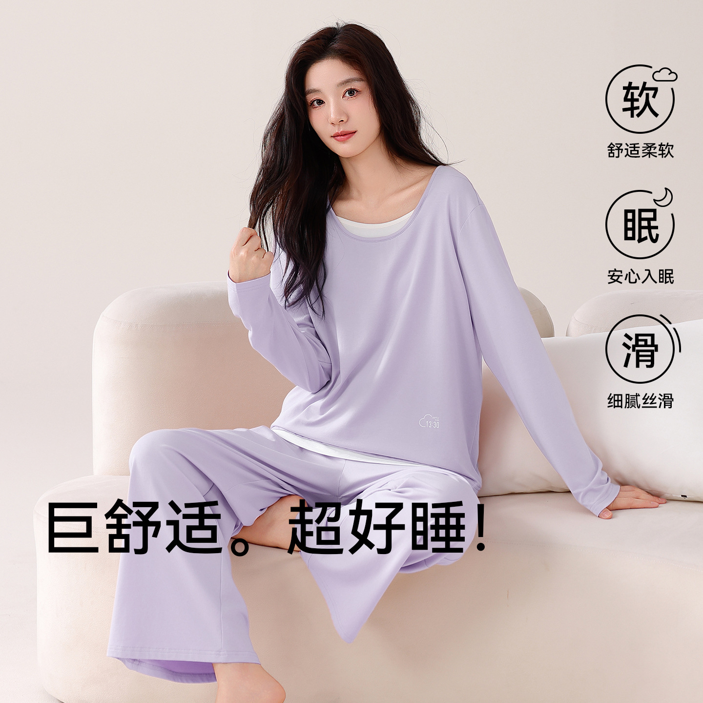 莫代尔睡衣女士带胸垫春秋季2025年新款长袖大码高级感家居服套装