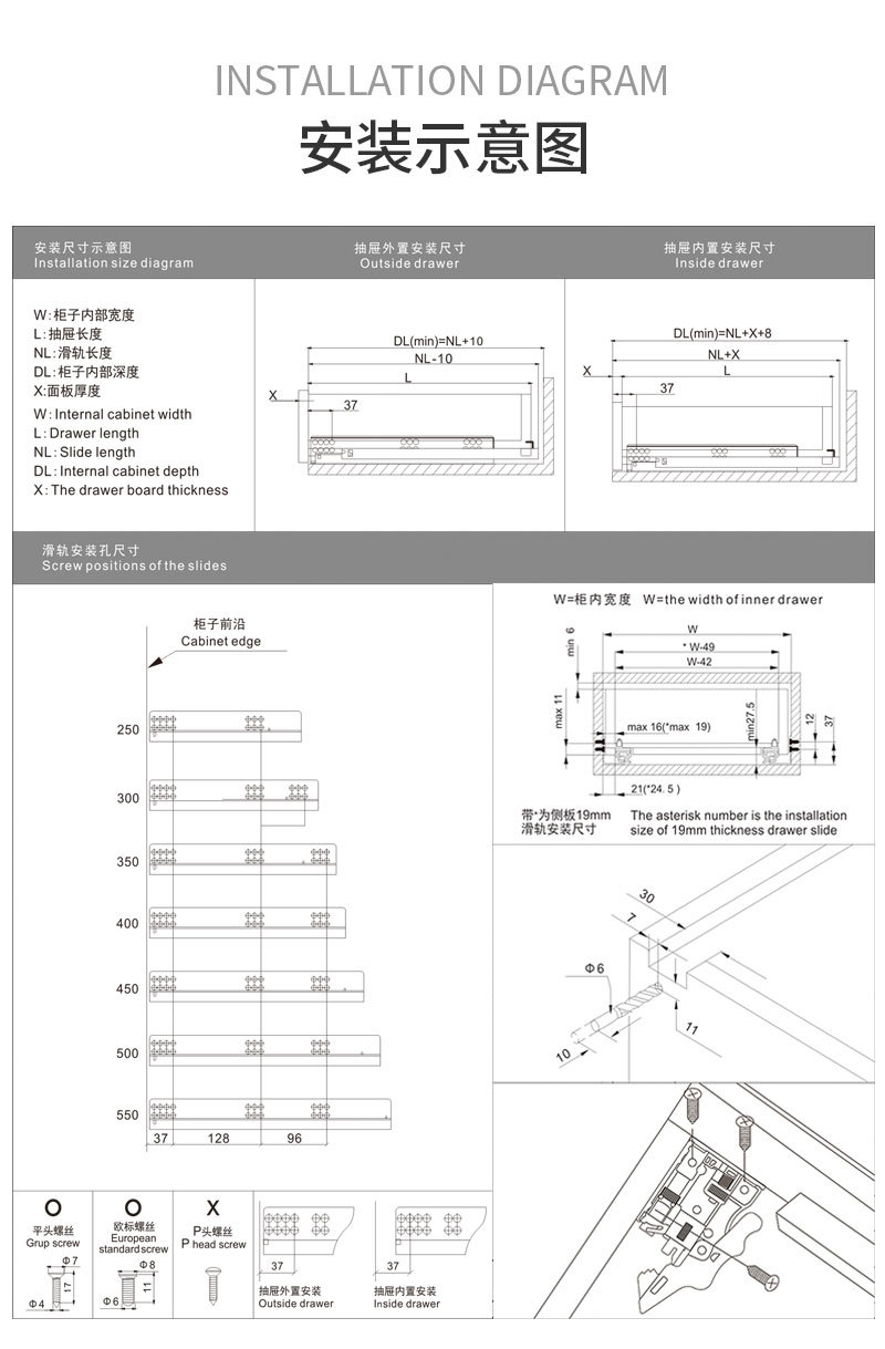 TJL-2588ハンドルタイプ3セクション隠しスライドレール