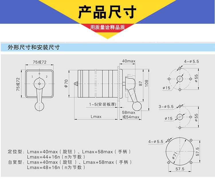 万能切替スイッチLW26-63/3二重電源切替380Vモーター逆転正転手動自動63A