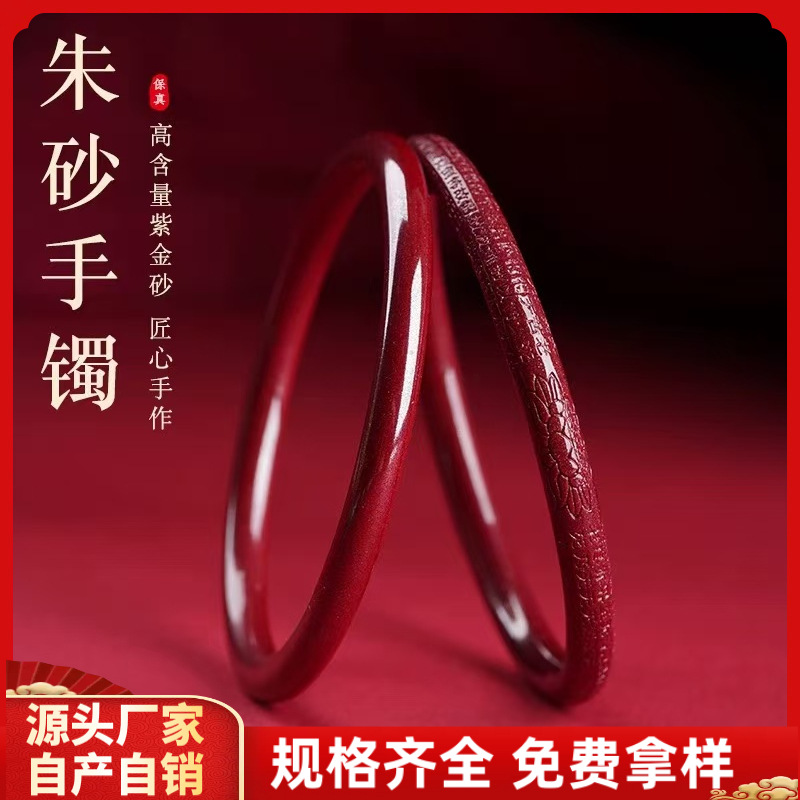 紫金砂朱砂光面圆条手镯低含量圆条美人镯贵妃镯礼物心经手镯批发