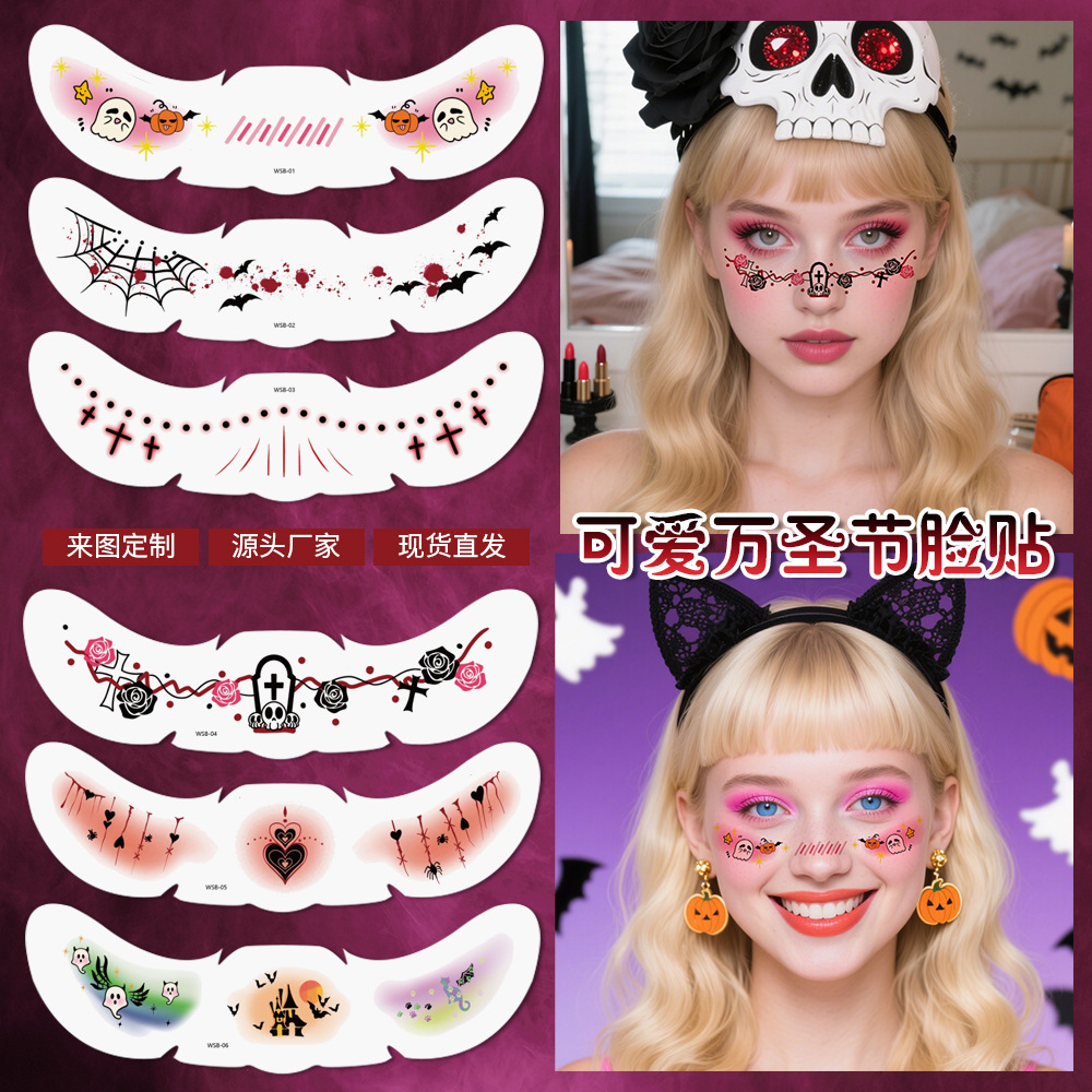 跨境新款欧美卡通万圣节脸贴高级感舞会派对面部装饰临时纹身贴纸