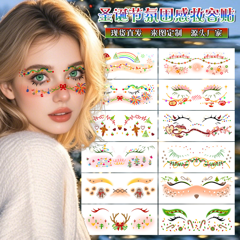 跨境新品圣诞节妆容眼角脸贴高级感可爱卡通面部装饰临时纹身贴纸