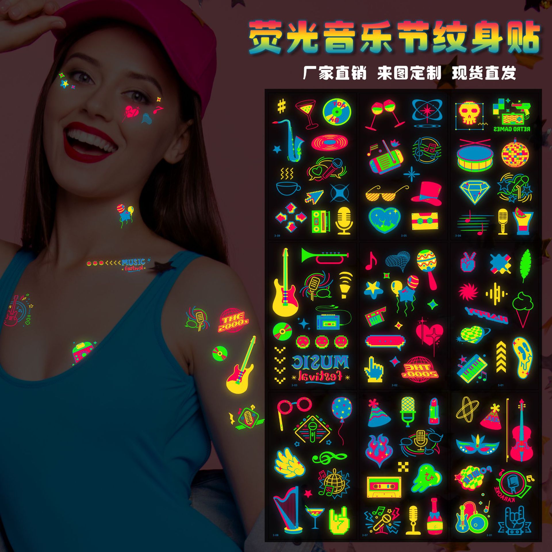 越境新型創意電気音節蛍光刺青は夜店のバーコンサートを貼って音楽祭の刺青のステッカーを応援します。