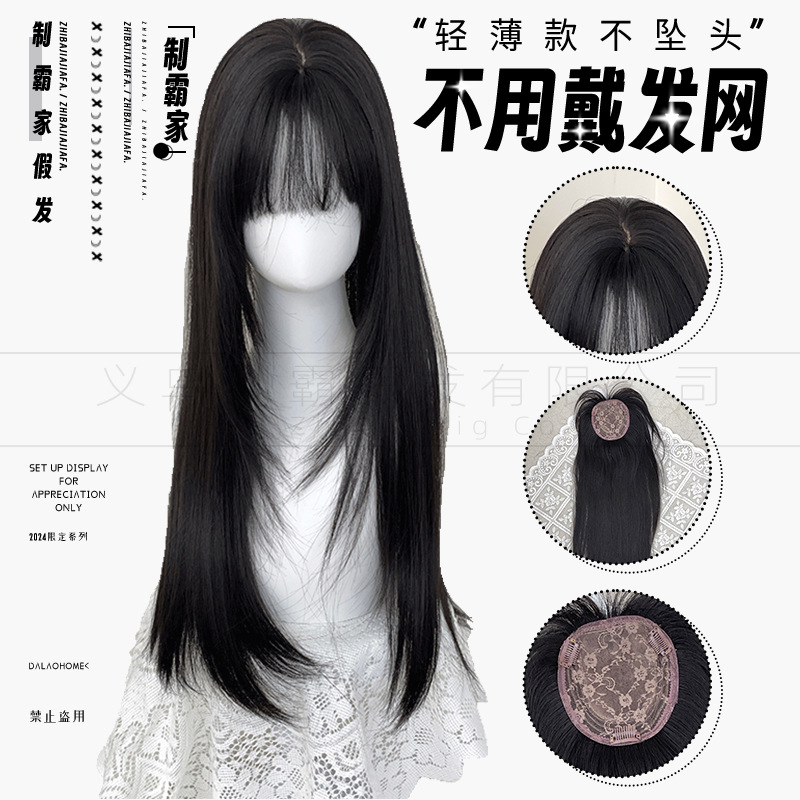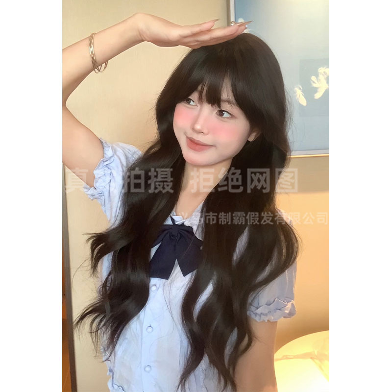 制覇かつら黒長直自然ふわふわシミュレーション斉前髪日常初恋感ネット赤少女全頭カバー卸売り