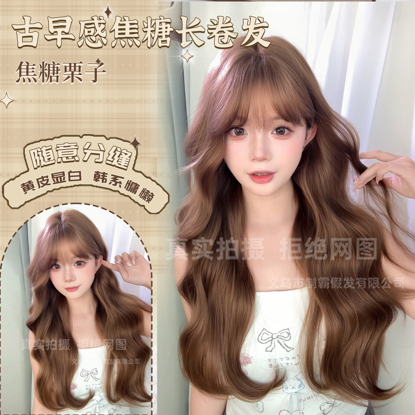 制霸假发焦糖栗子长卷发古早氛围感甜美可爱自然蓬松女全头套外贸