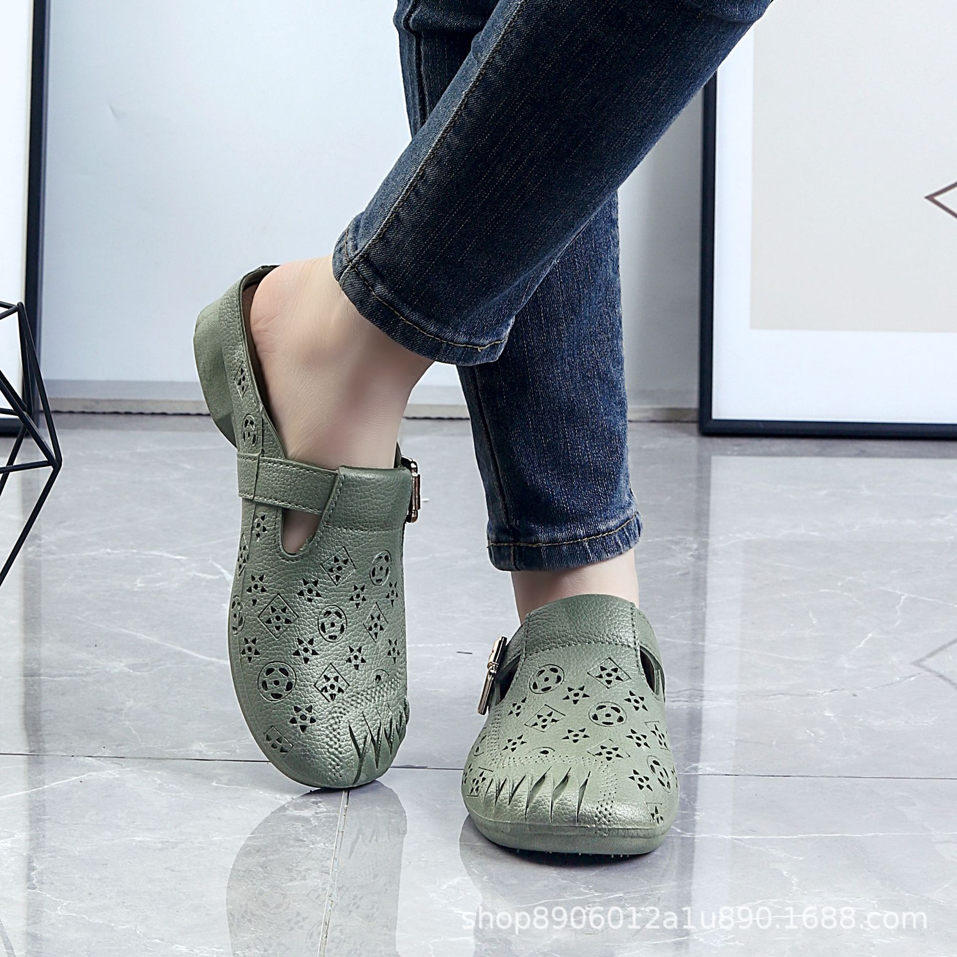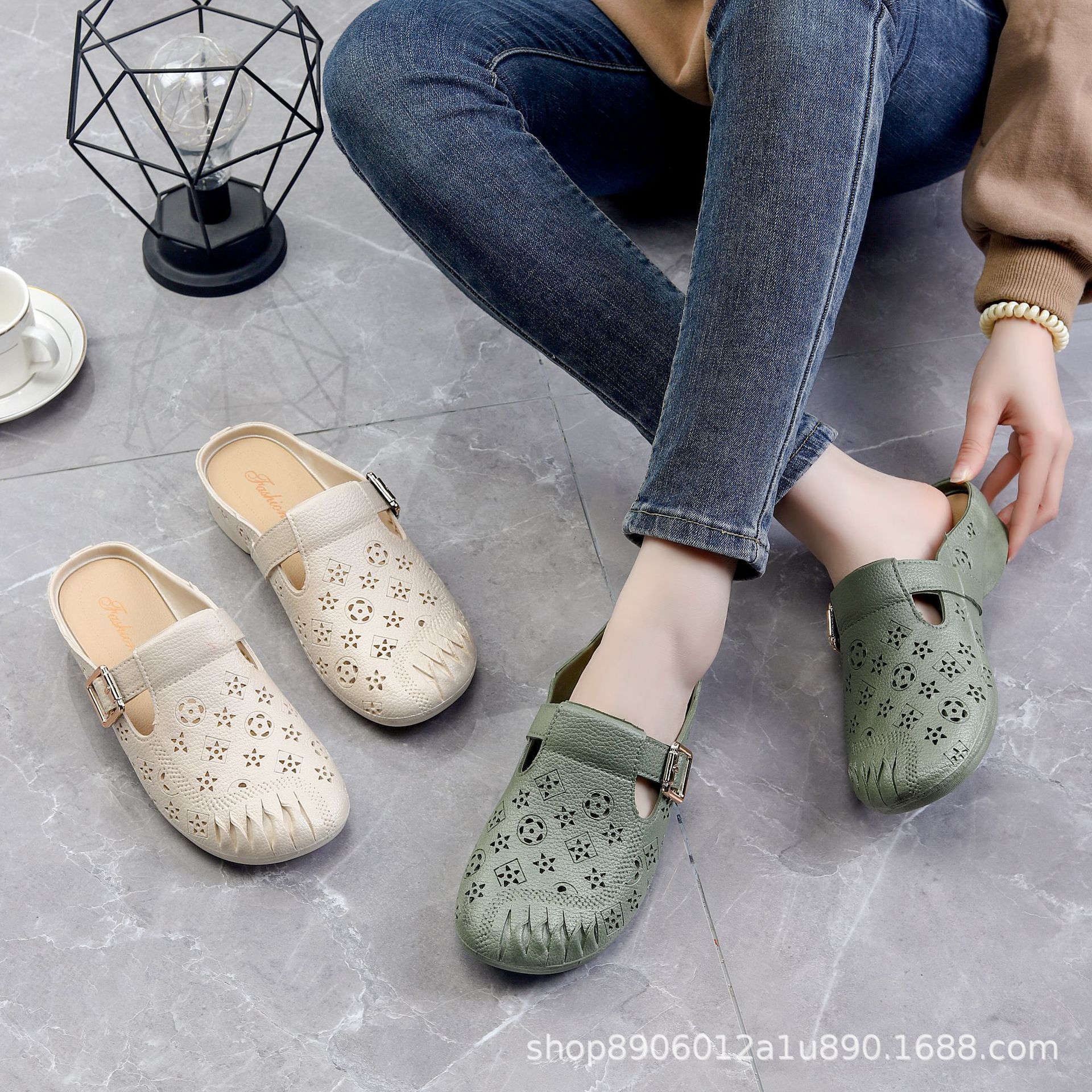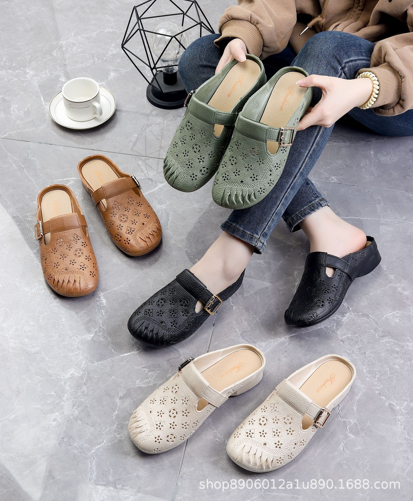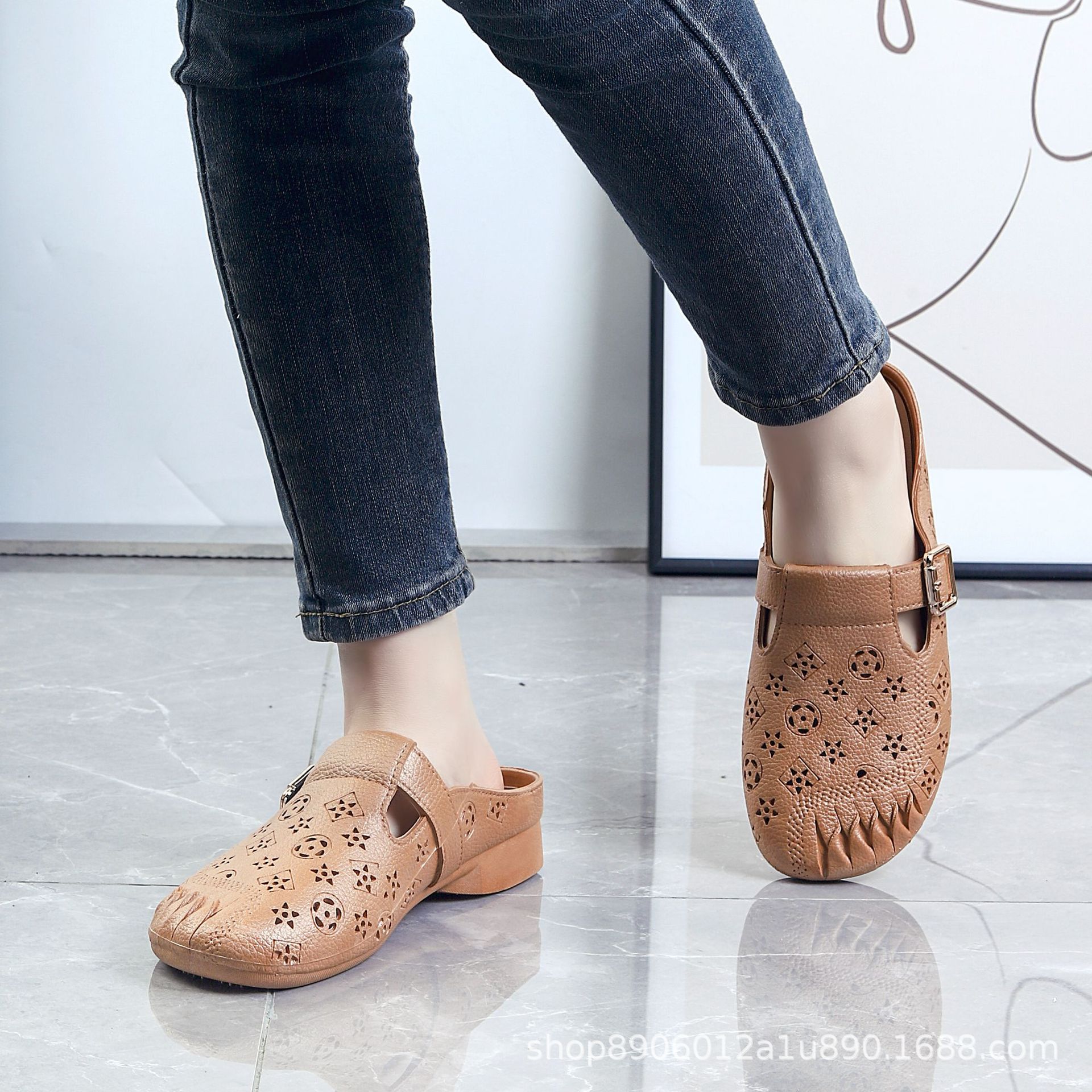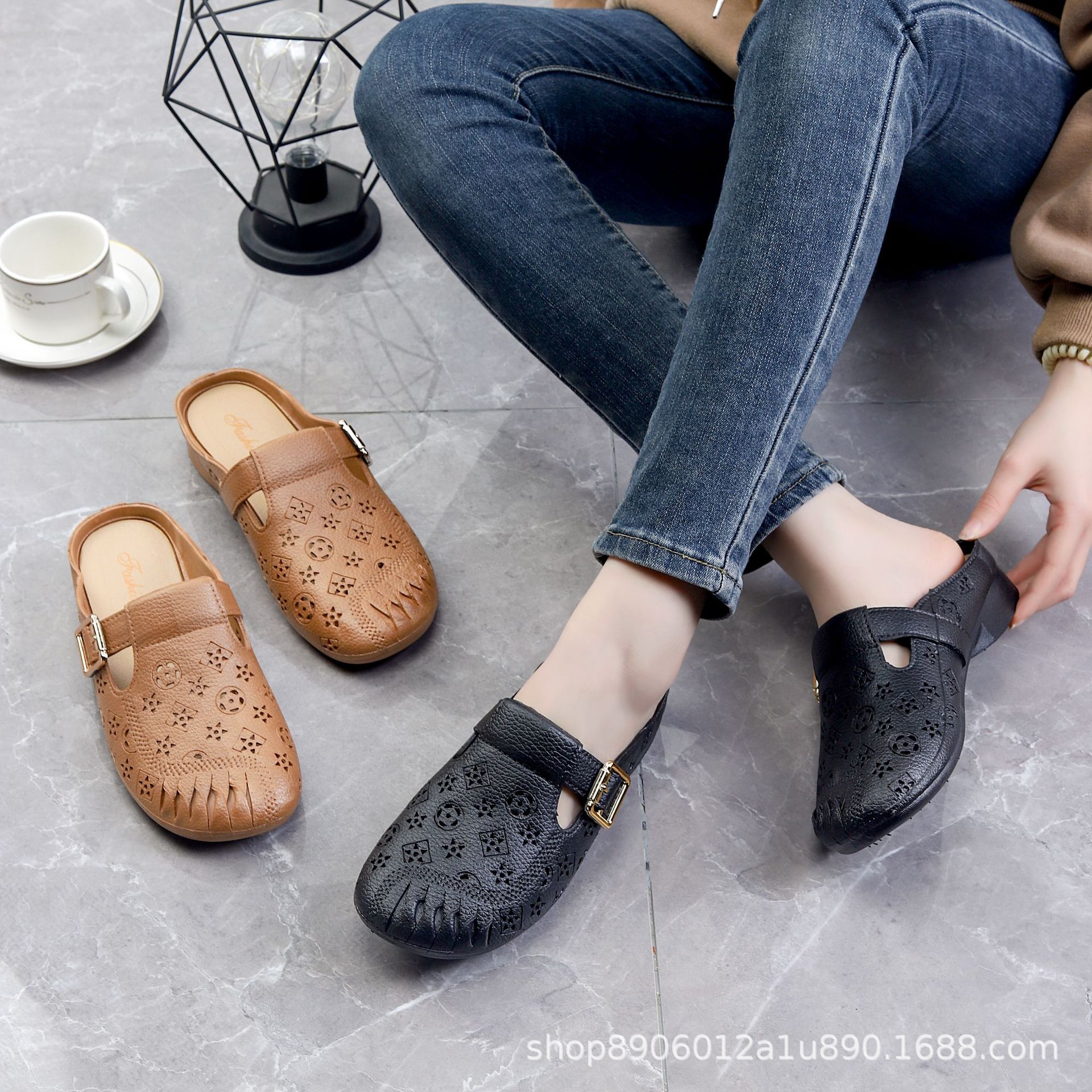 クロスボーダー半カバンサンダル女性靴中高年怠け者ソフト底透かし彫りサンダル滑り止め防水サンダル