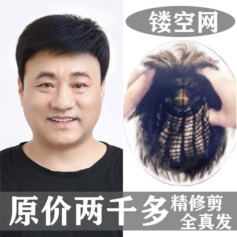 かつらの男性のショートヘアの頭の上に男性のファッション三七分の本物の髪が薄くて通気性のある髪の線が自然にリアルです。