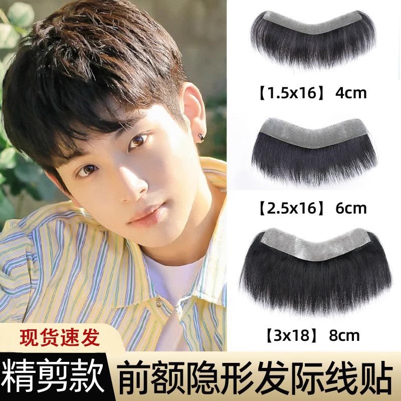 髪の糸のかつらは男性の本当に短い髪の額を貼って、目に見えない男の金の鬢の角の前髪のかつらを付け加えます。