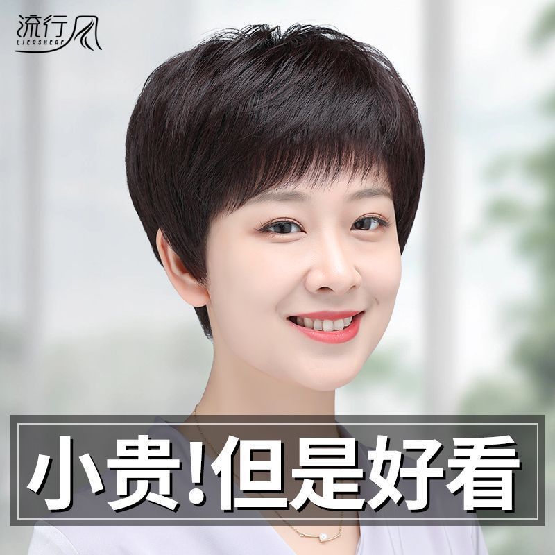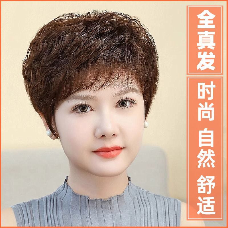 かつらの女性の全頭カバーの本当の髪の全人の髪の中高年の女性のショートヘアの自然な髪の毛の短いまっすぐなお母さんの髪カバー