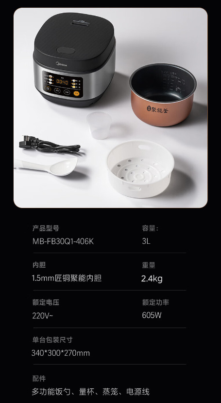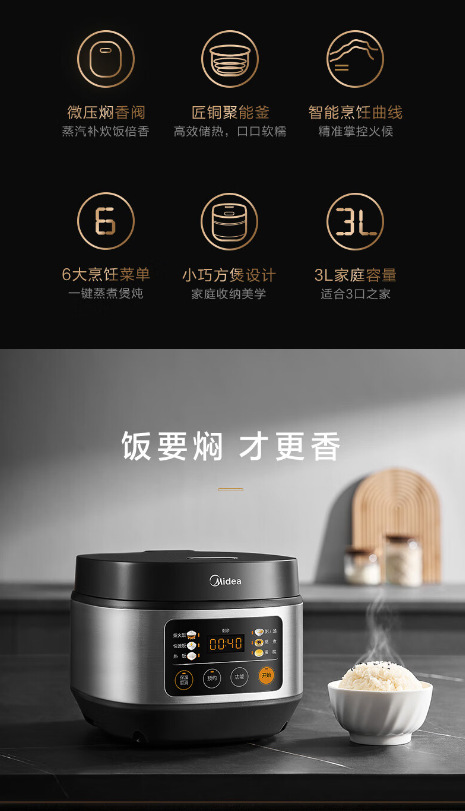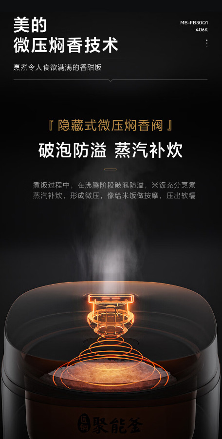 美炊飯器3L微圧蒸気弁24時間予約黄晶内胆蒸米飯鍋FB30Q1-406K