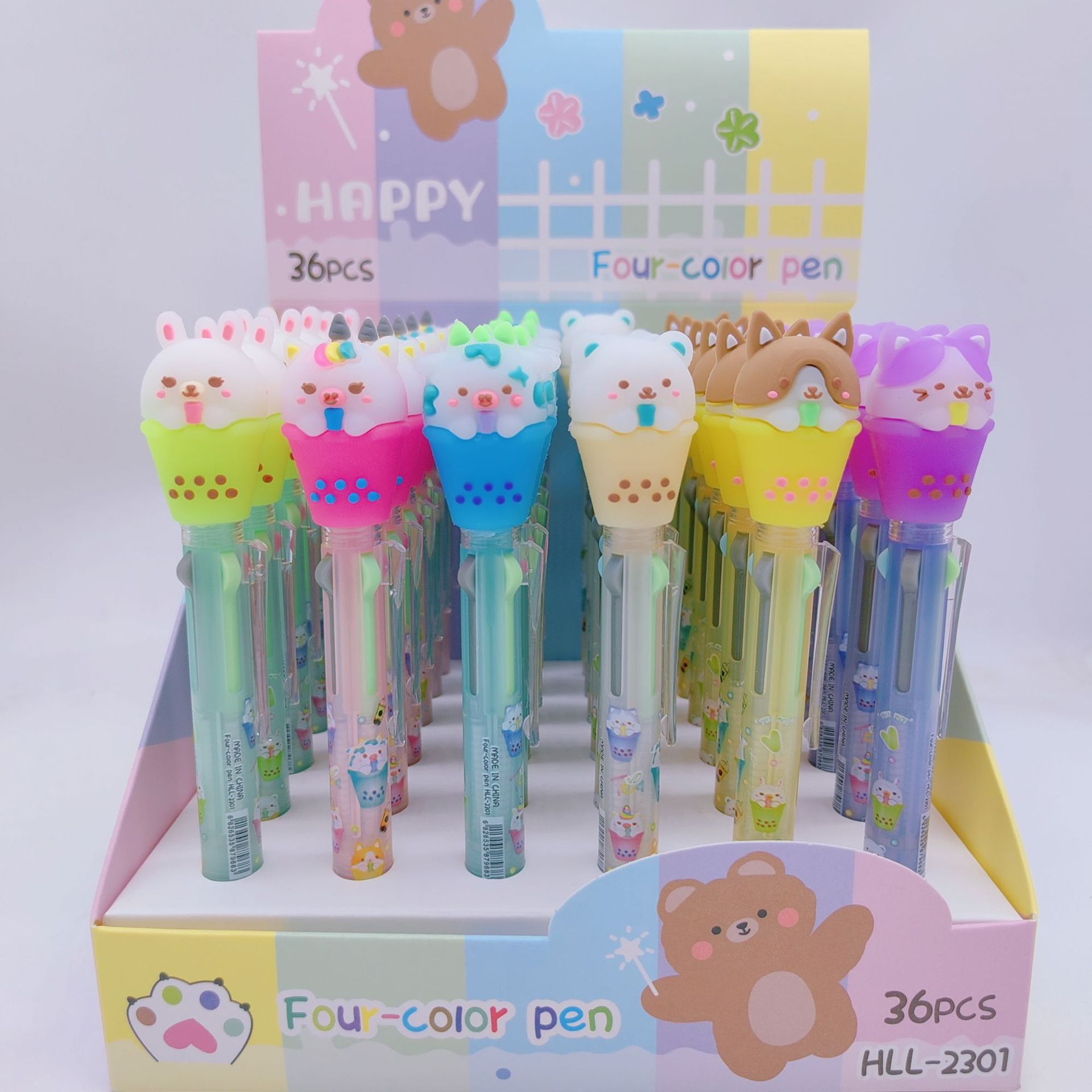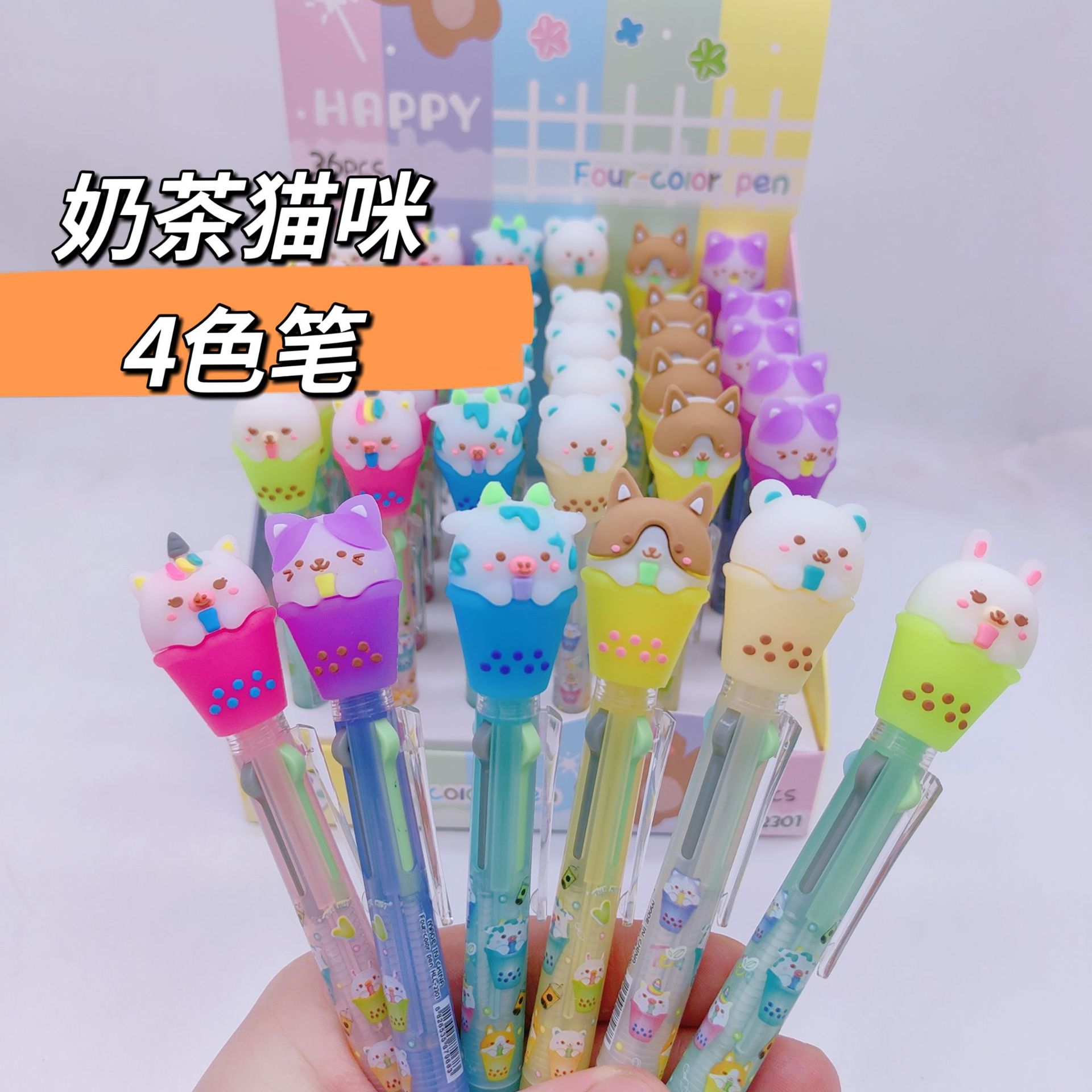 新しい外国貿易アニメミルクティー萌え猫4色筆学生落書き多色色筆筆記文房具事務文房具