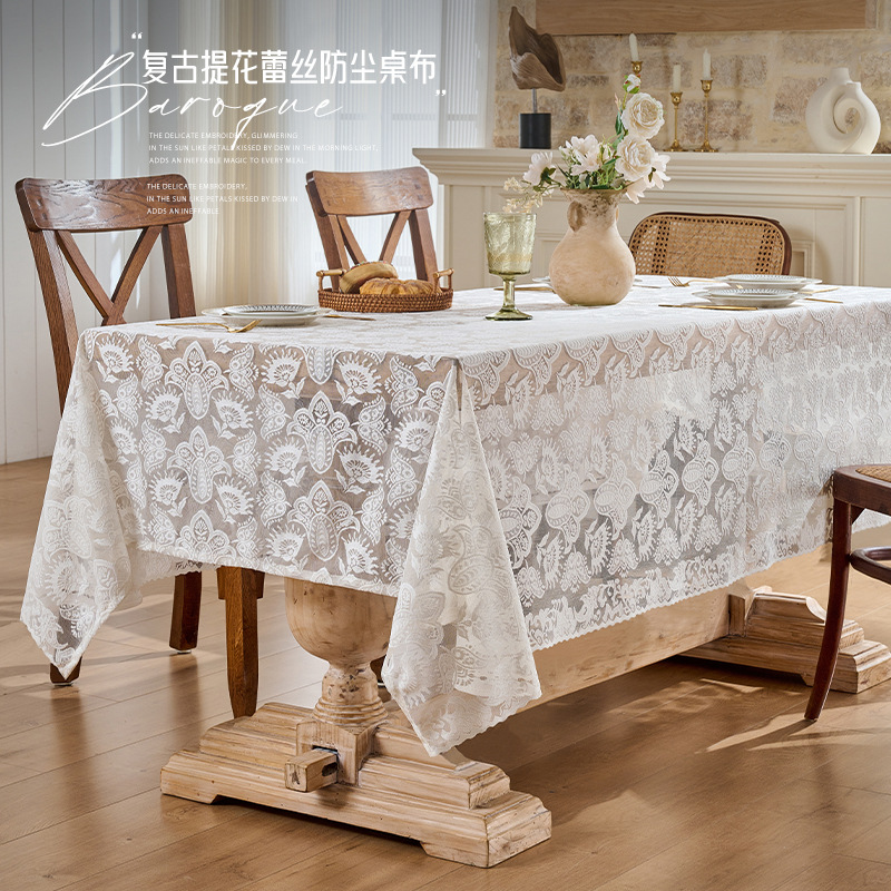 フレンチホワイトレーステーブルクロスレストランライト高級ハイエンドテーブルクロスホームノンスリップジャカードコーヒーテーブルキャビネットカバー布