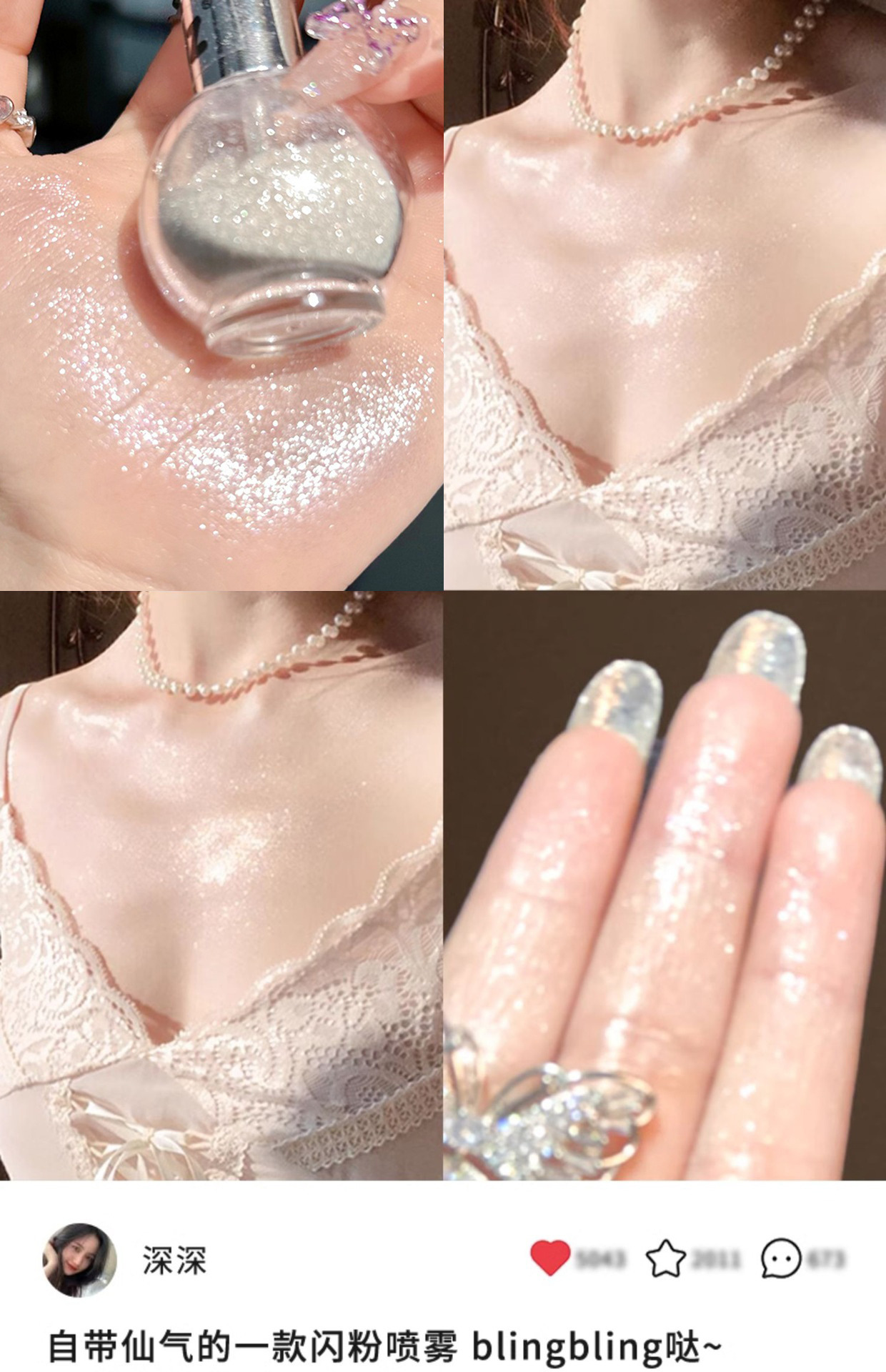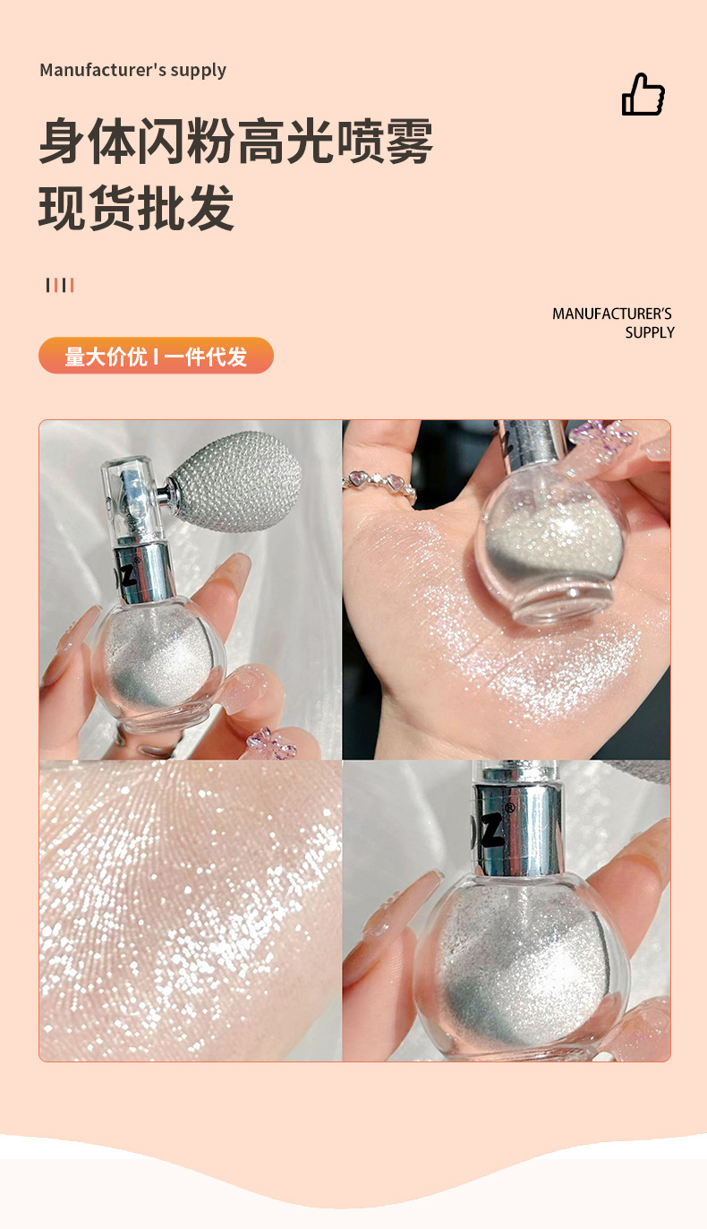 クロスボーダーグリッタースプレー、高光沢エアバッグ、ファイングリッタースプレーパウダー、ビューティーパール光沢ブライトニング、多用途ルースパウダー化粧品、ブライトニングリキッド