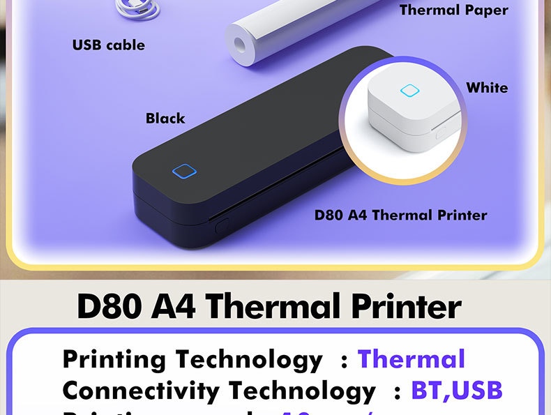 D82打印机家用热敏小型学生试卷便携式无墨无线蓝牙智能手机办公