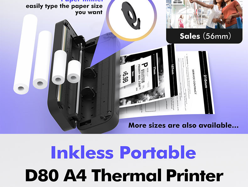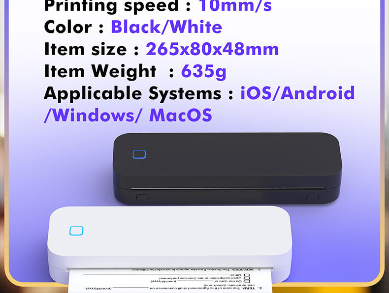 国境を越えた携帯型感熱A4家庭用プリンタは、携帯電話のワイヤレスオフィスでミニ印刷機を学ぶことができる