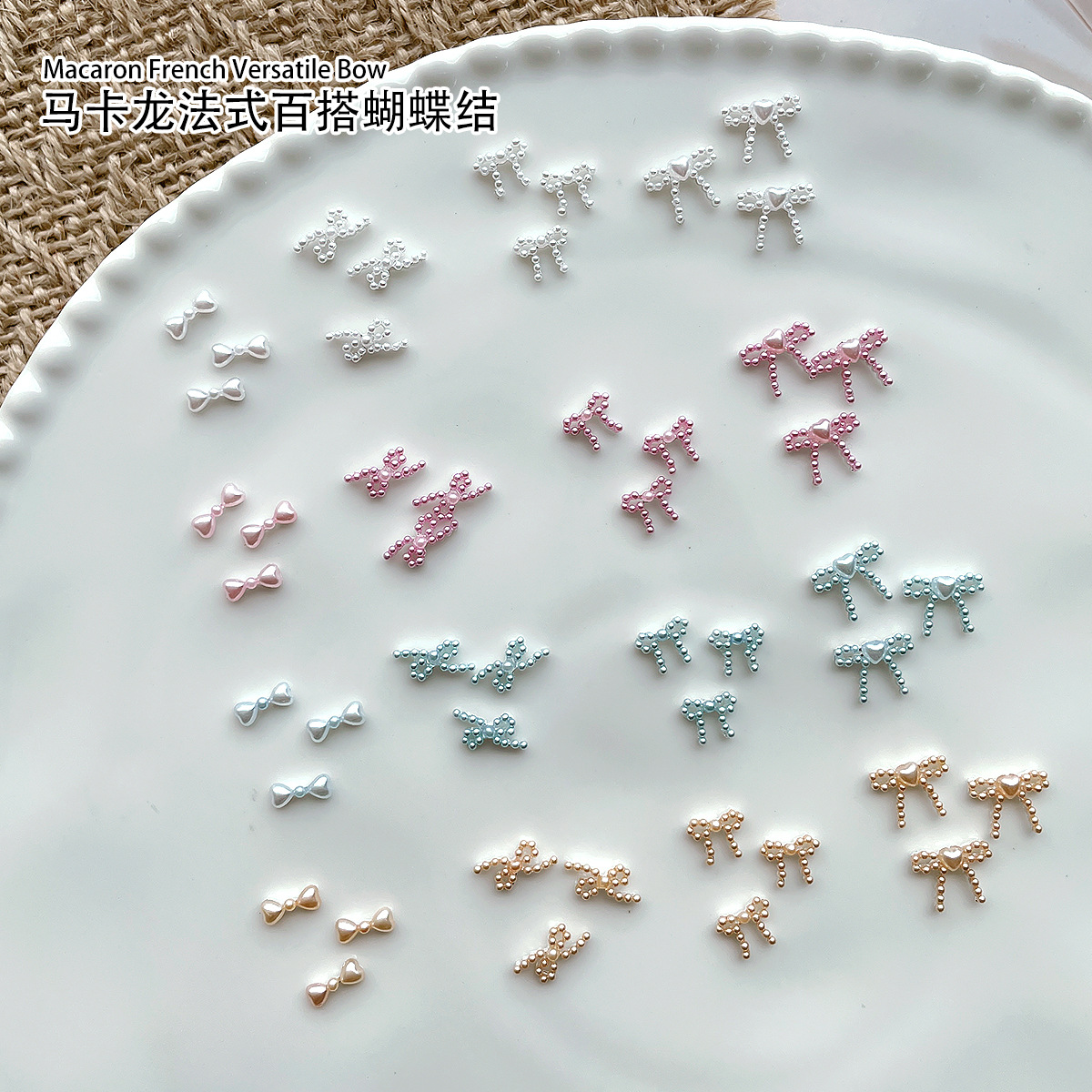 美甲小饰品法式珍珠蝴蝶结超亮爆闪立体领结蝴蝶结飘带指甲装饰品