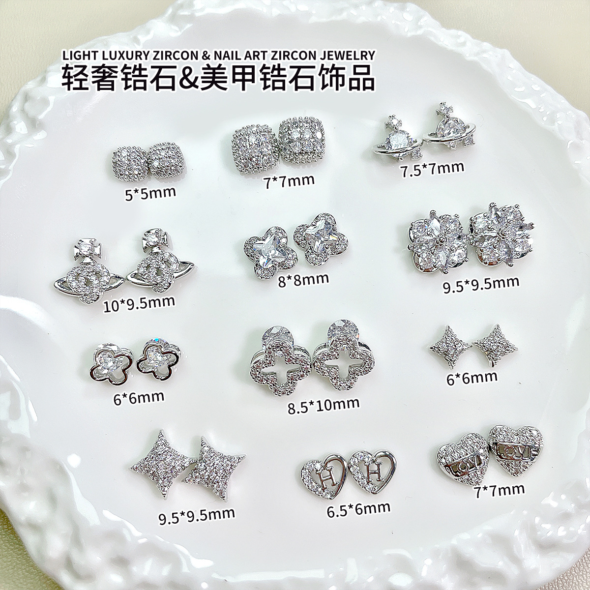 轻奢四叶锆石美甲钻饰品真金小巧精致四瓣花电镀保色指甲钻装饰