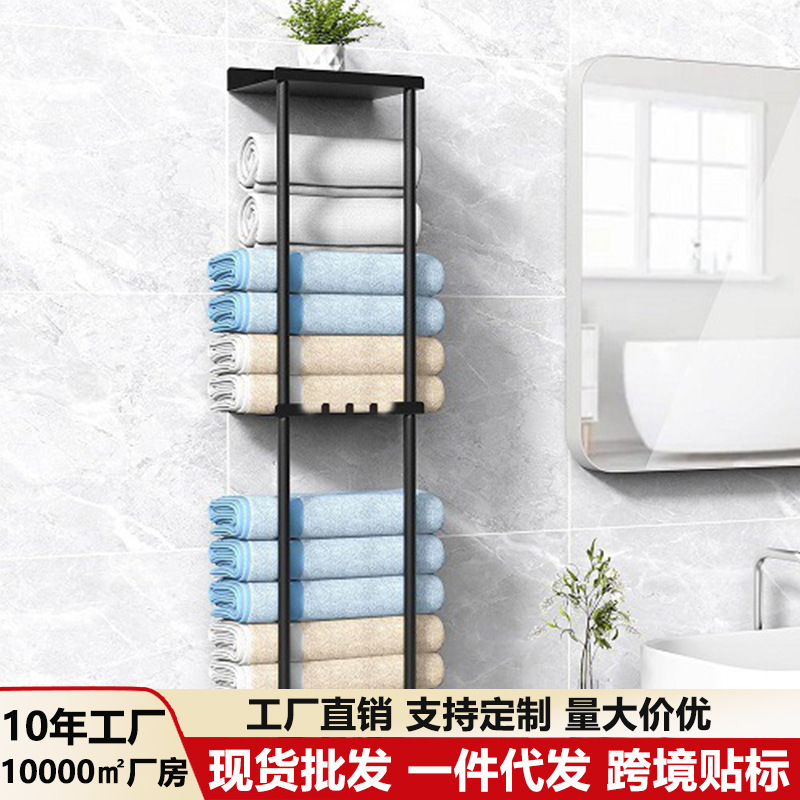 タオル掛け浴室タオル掛けトイレ壁掛け鉄芸多層タオル収納棚壁掛けホッチキス棚