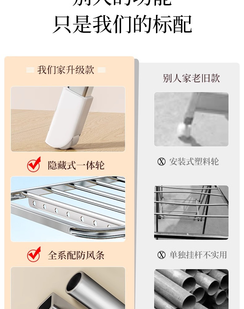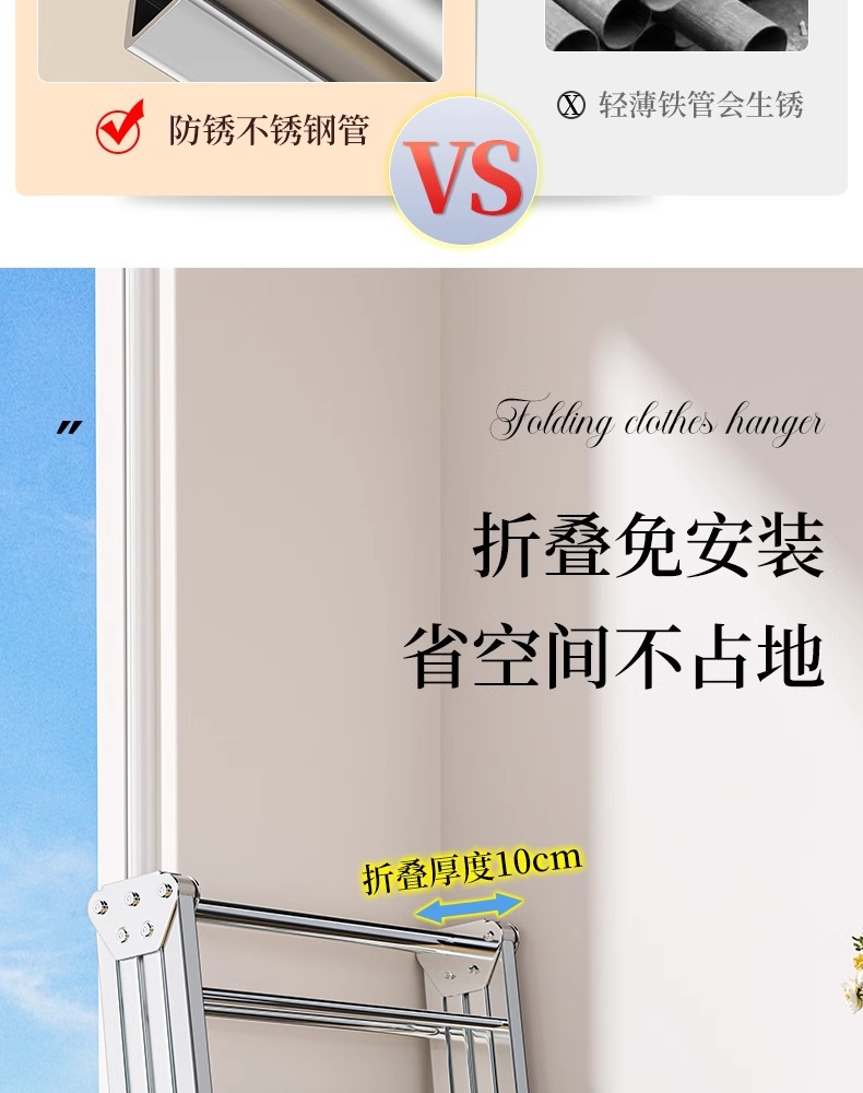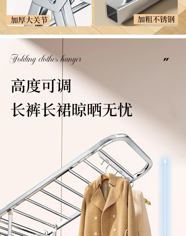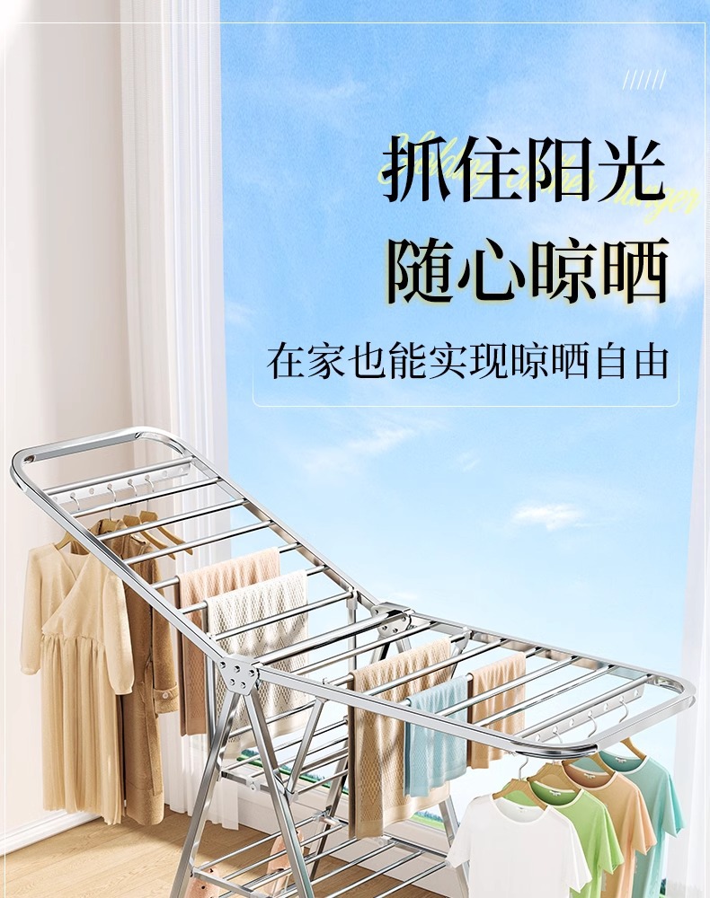 源头工厂不锈钢晾衣架家用落地折叠阳台晒衣架婴儿衣物被子晾干架