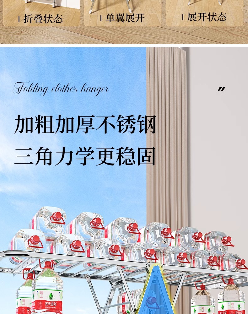 折叠晾衣架落地家用卧室阳台晒衣架室内婴儿凉晒挂衣杆晒被子收纳