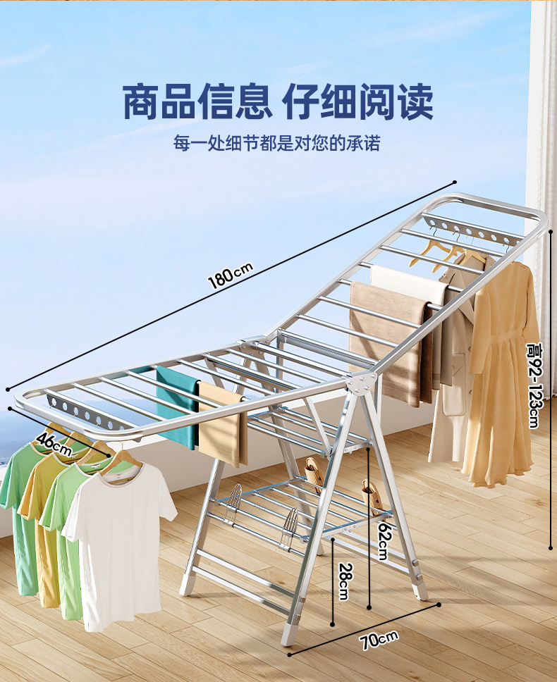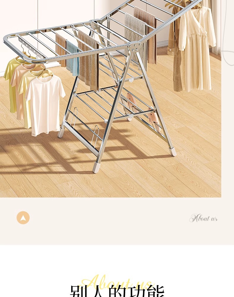 ステンレスの床置きハンガーは折り畳みして設置しないでください。ベランダの家庭用ハンガーの翼の形は布団の服の神器の棚を干します。