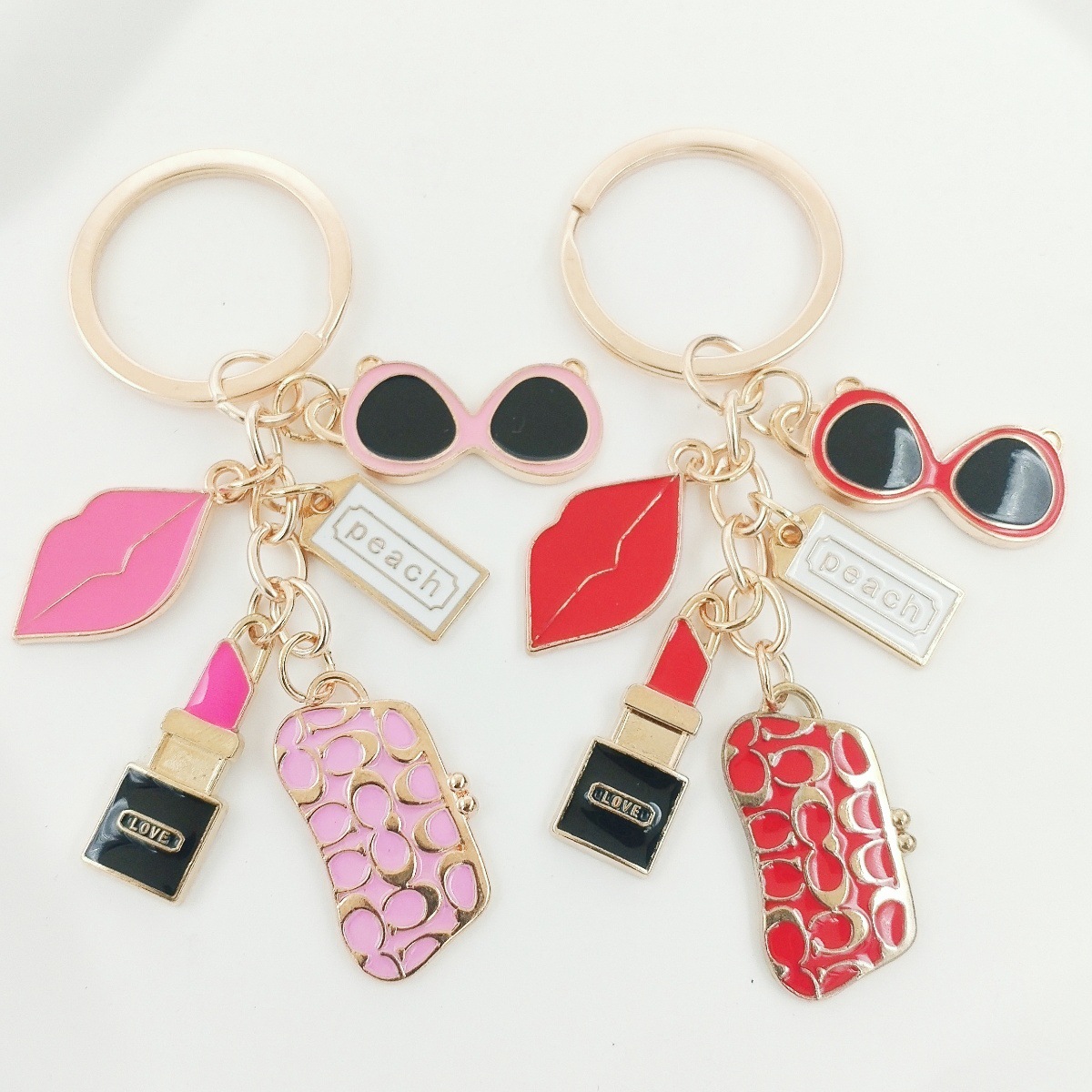 新しいエナメル口紅財布サングラス赤い唇ペンダントキーホルダーファッションガールバッグペンダント装飾ギフト
