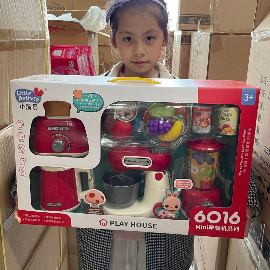 俳優のままごとキッチン朝食機セット家電パン機ジューサーミキサー照明効果玩具