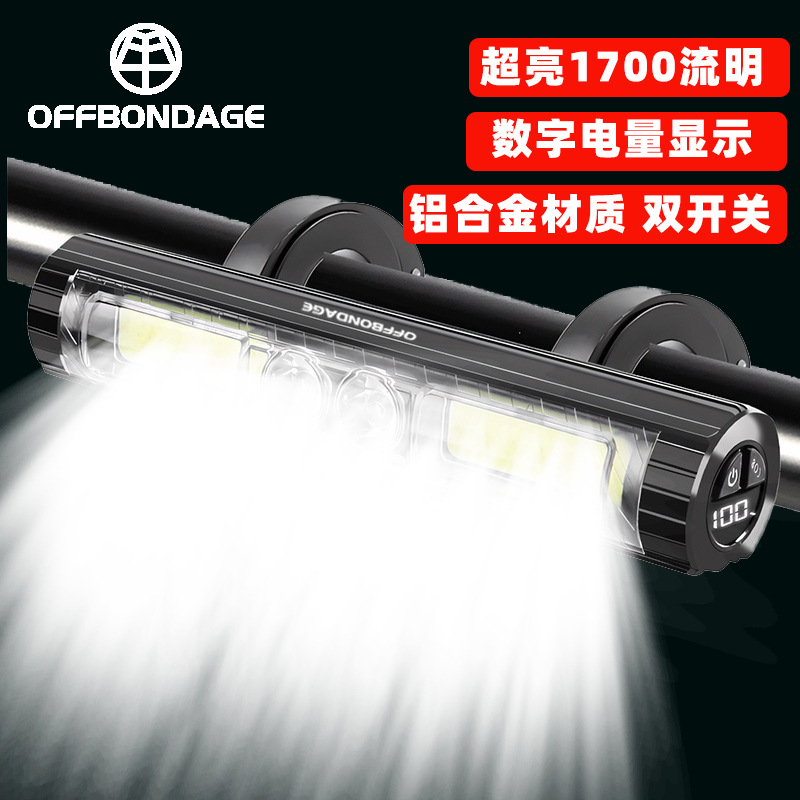 Off bondage高点灯夜騎行ヘッドライトUSB充電懐中電灯防水超軽量大電池航続
