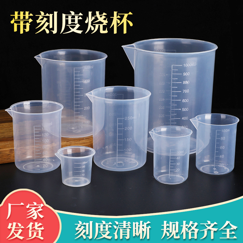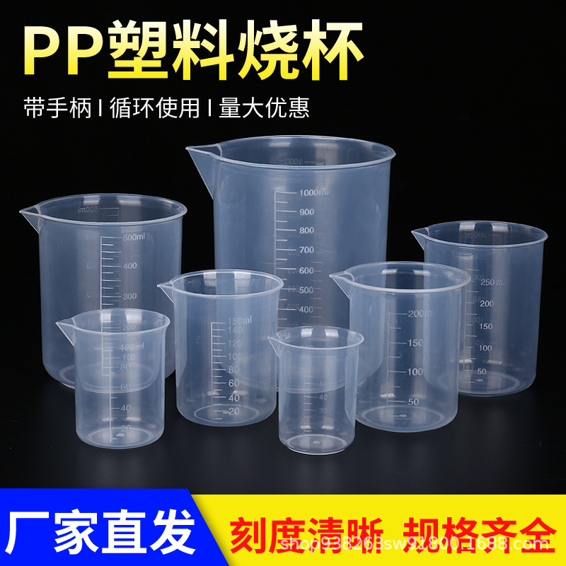 既製プラスチックビーカー計量カップ 厚手PP25-1000ml 実験室用 目盛り付き 耐高温PPカップ