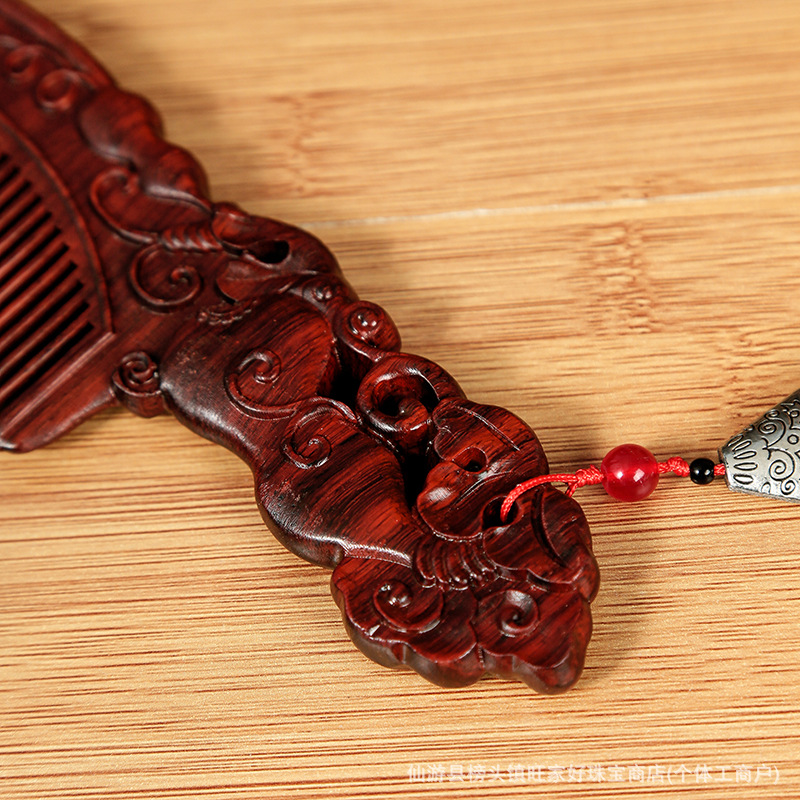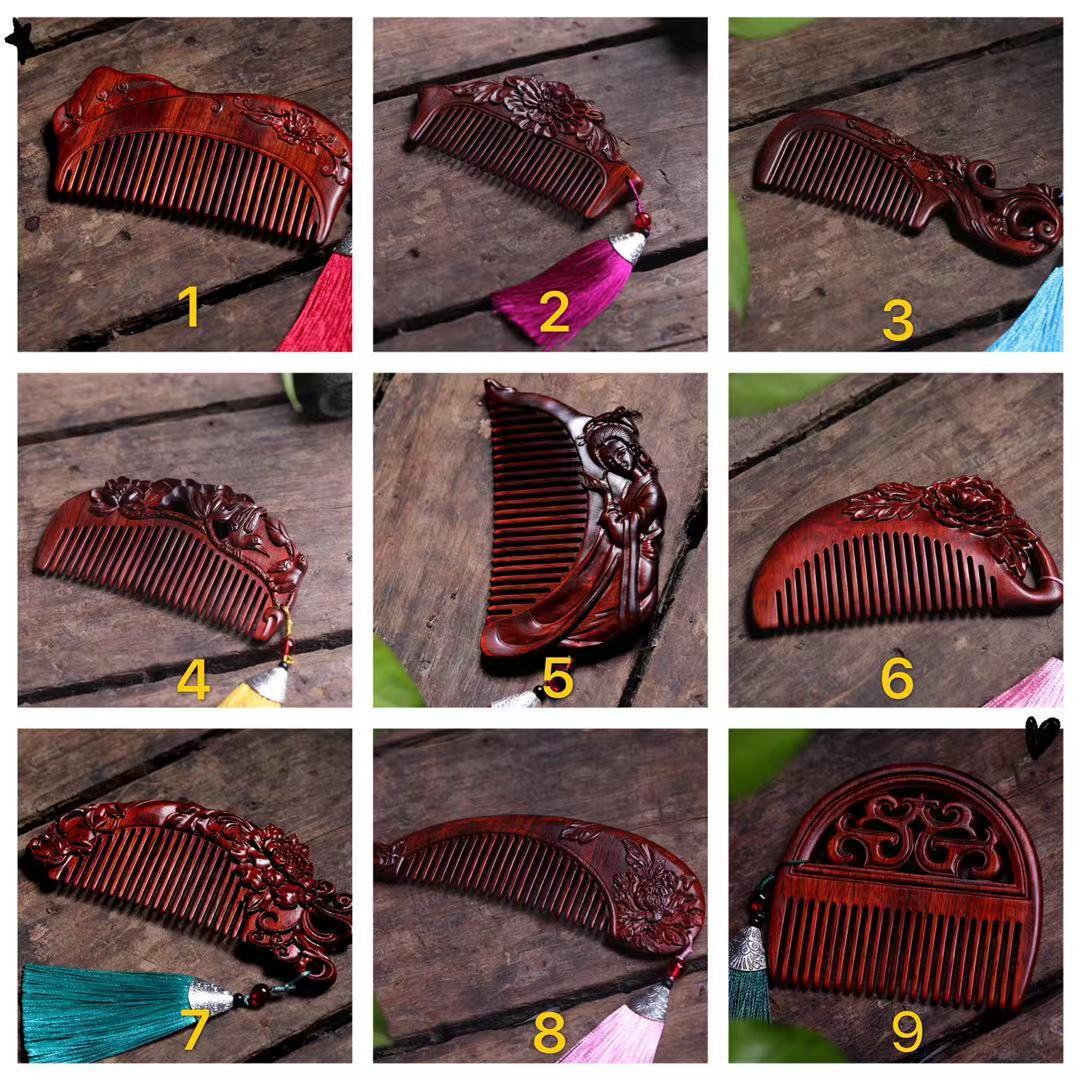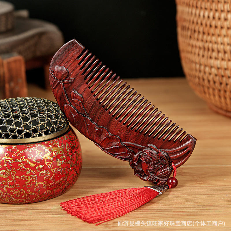 紫檀木雕刻双面木梳按摩头皮婚庆节日送礼厂家直销紫檀木雕刻木梳