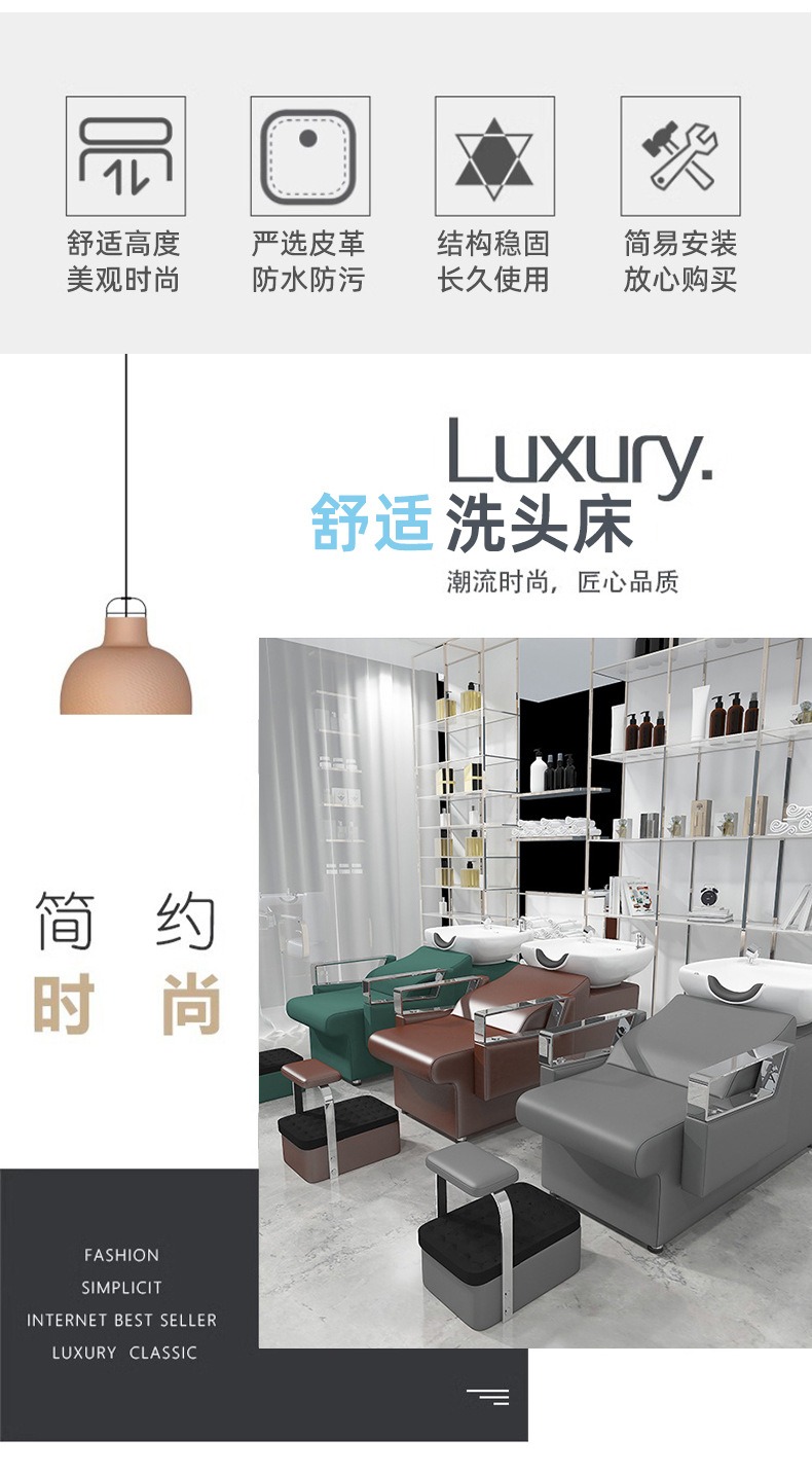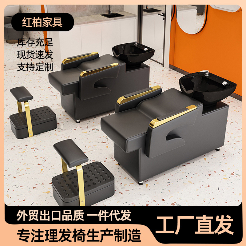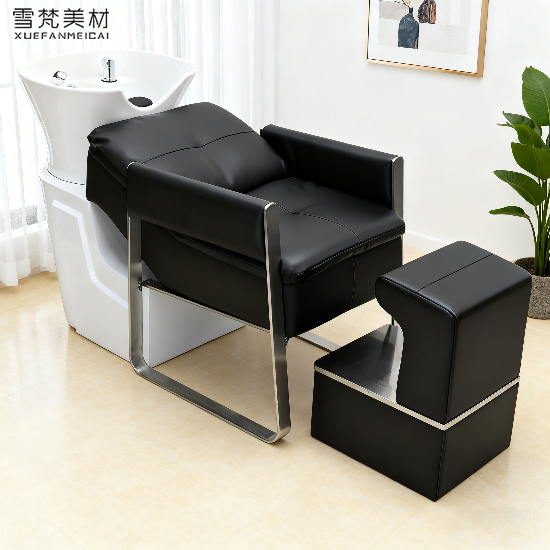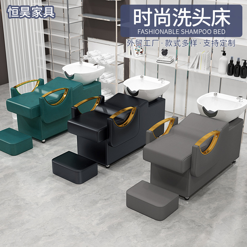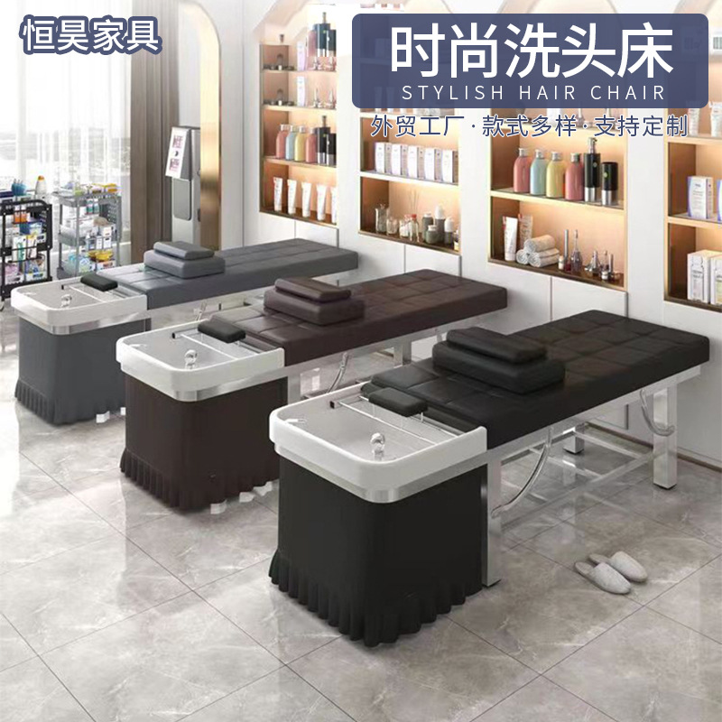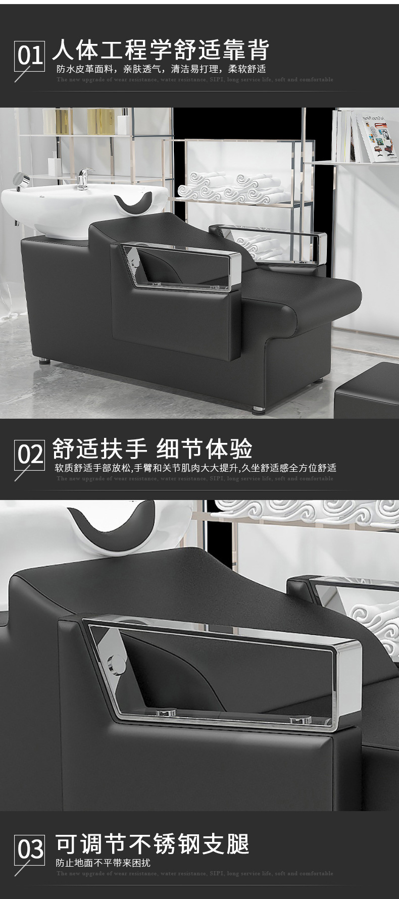 理发店专用高级半躺式不锈钢洗头床网红发廊冲水床美发店陶瓷深盆