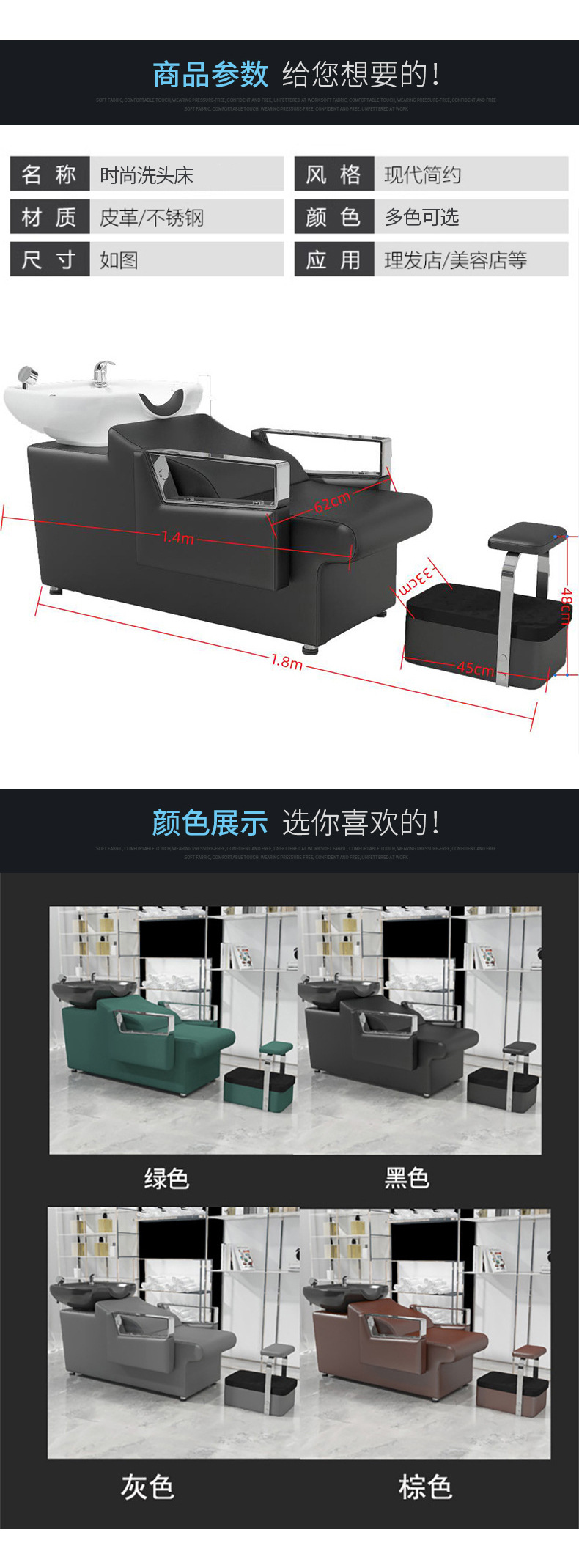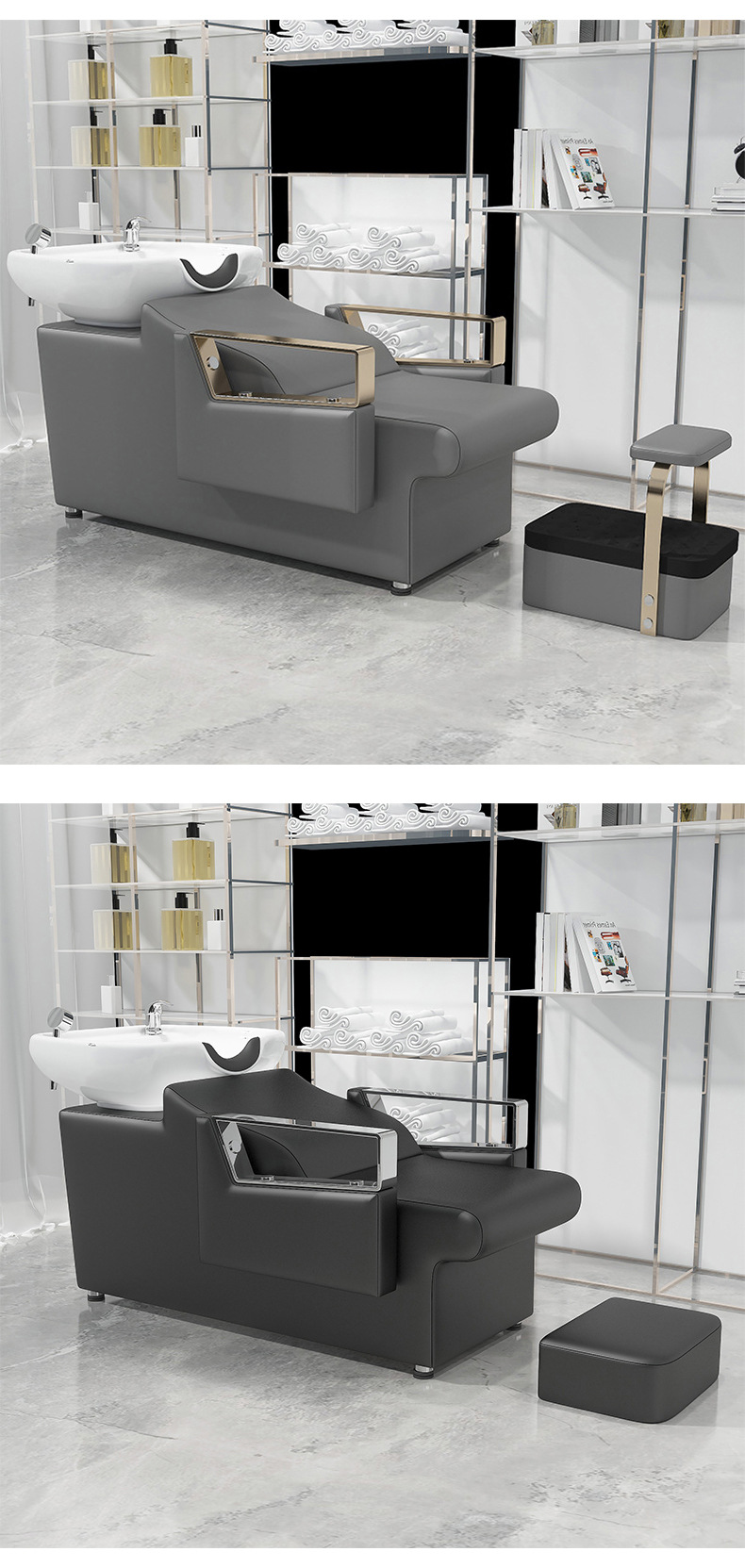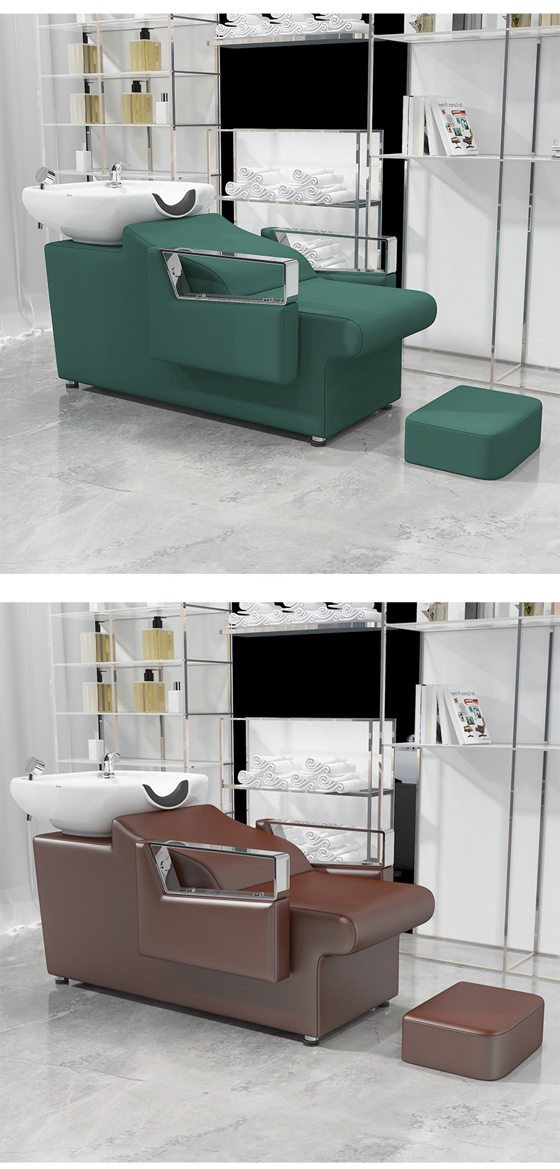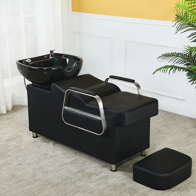 洗髪ベッド 理髪店 半寝式 足置き付き 洗髪・洗浄ベッド シンプル レザー風 セラミック製洗面器 マッサージ洗髪ベッド