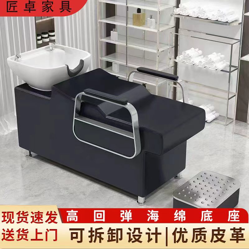 小型理发店陶瓷半躺式洗头床美发床沙龙洗头椅发廊专用冲水床洗发