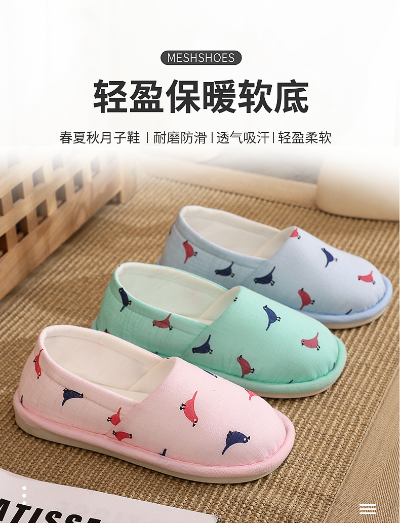 春夏の薄い月子靴456月の産婦の産後の月子の柔らかい底の包みと滑り止めの秋冬の日常の綿のスリッパ