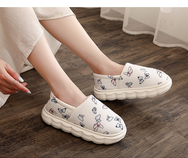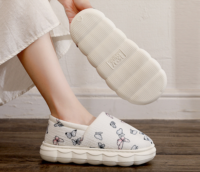 女性のバッグヒールホームシューズ無地コットンリネン薄いソフトボトムホームスエードスリッパフロアカーペットスリッパ