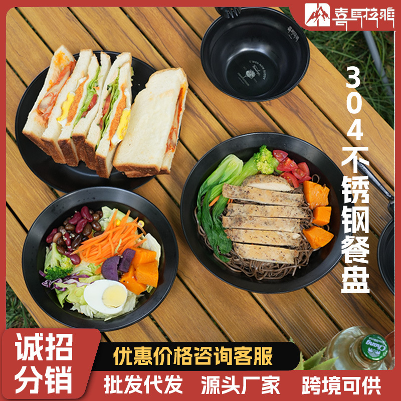 ヒマラヤアウトドアステンレスボウル、プレート、食器セット、ポータブルキャンプ食器セット、ピクニック用品、キャンプ用皿